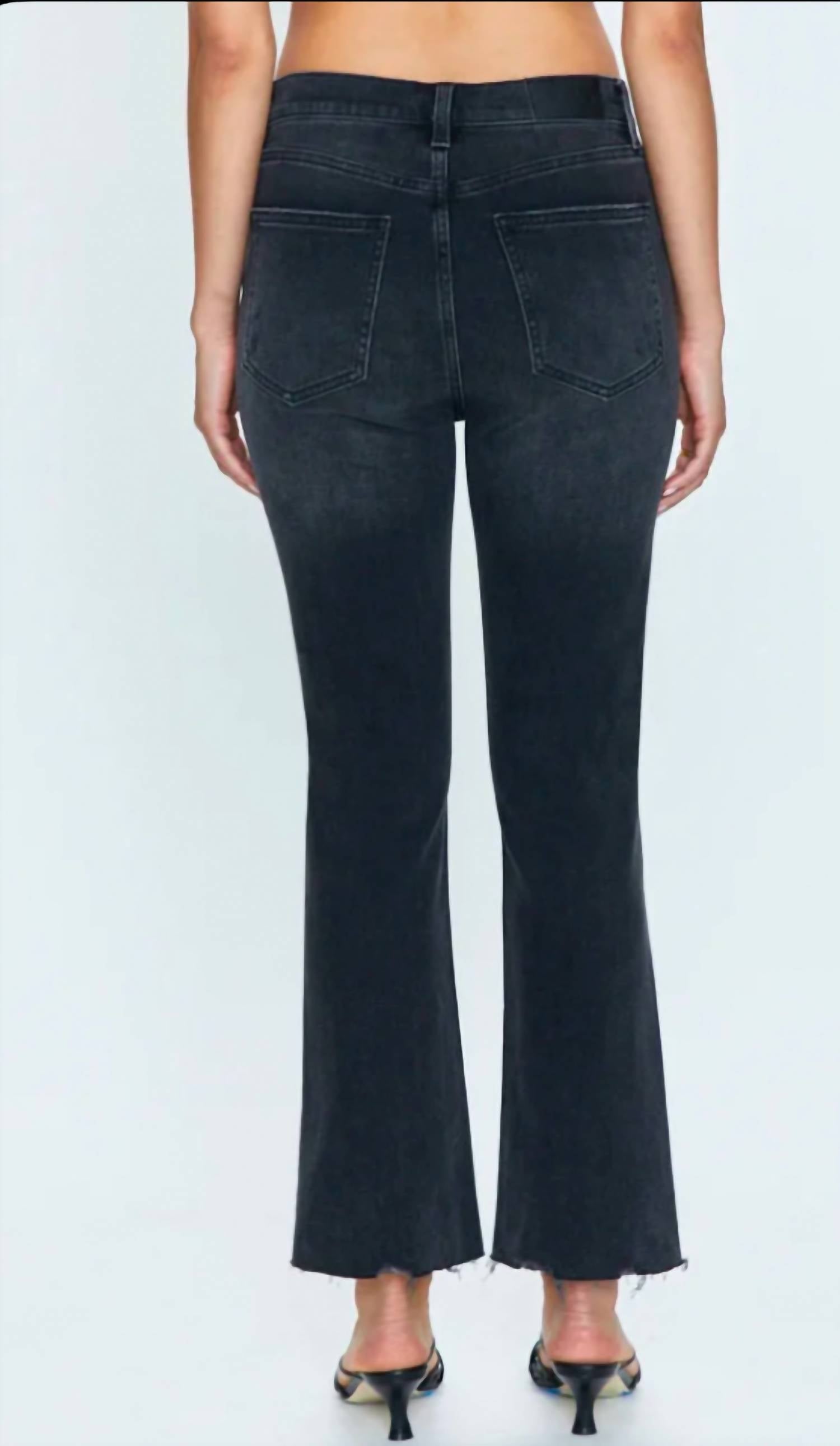 We especially love this cropped jean with a cute pair of slides or sandals. The Lennon is the best selling bootcut silhouette with a high rise waist and cropped ankle hem, crafted from comfort-stretch denim. Citadel Vintage is a washed black denim with fading, whiskering, vintage distressing, and finished with a raw edge hem. 96% Cotton / 3% Elasterell / 1% Spandex Machine Wash Cold