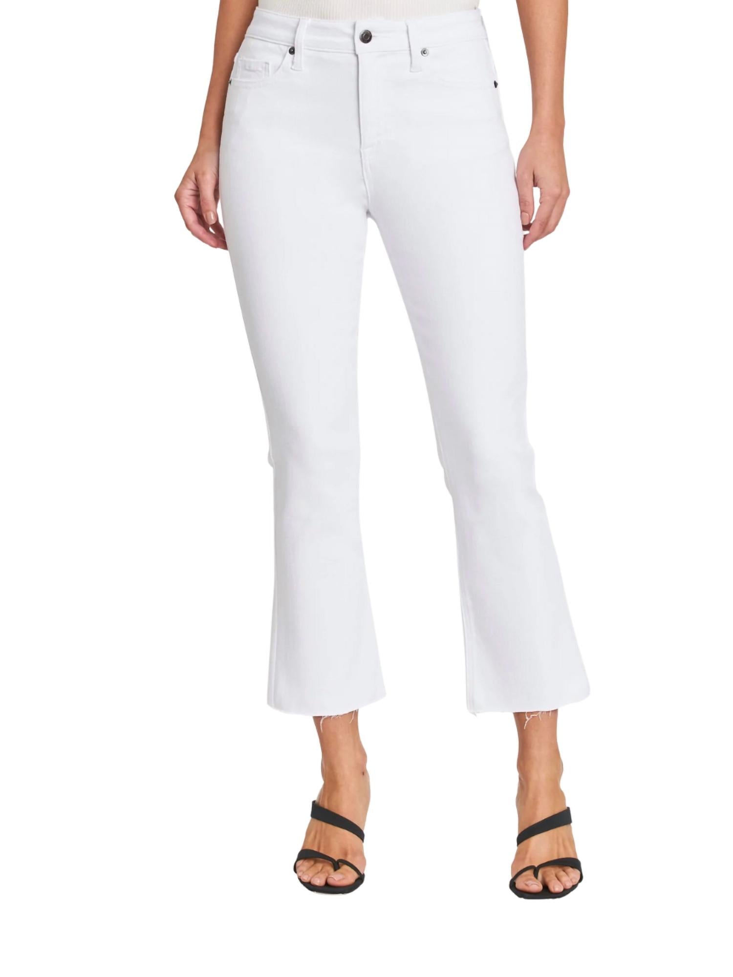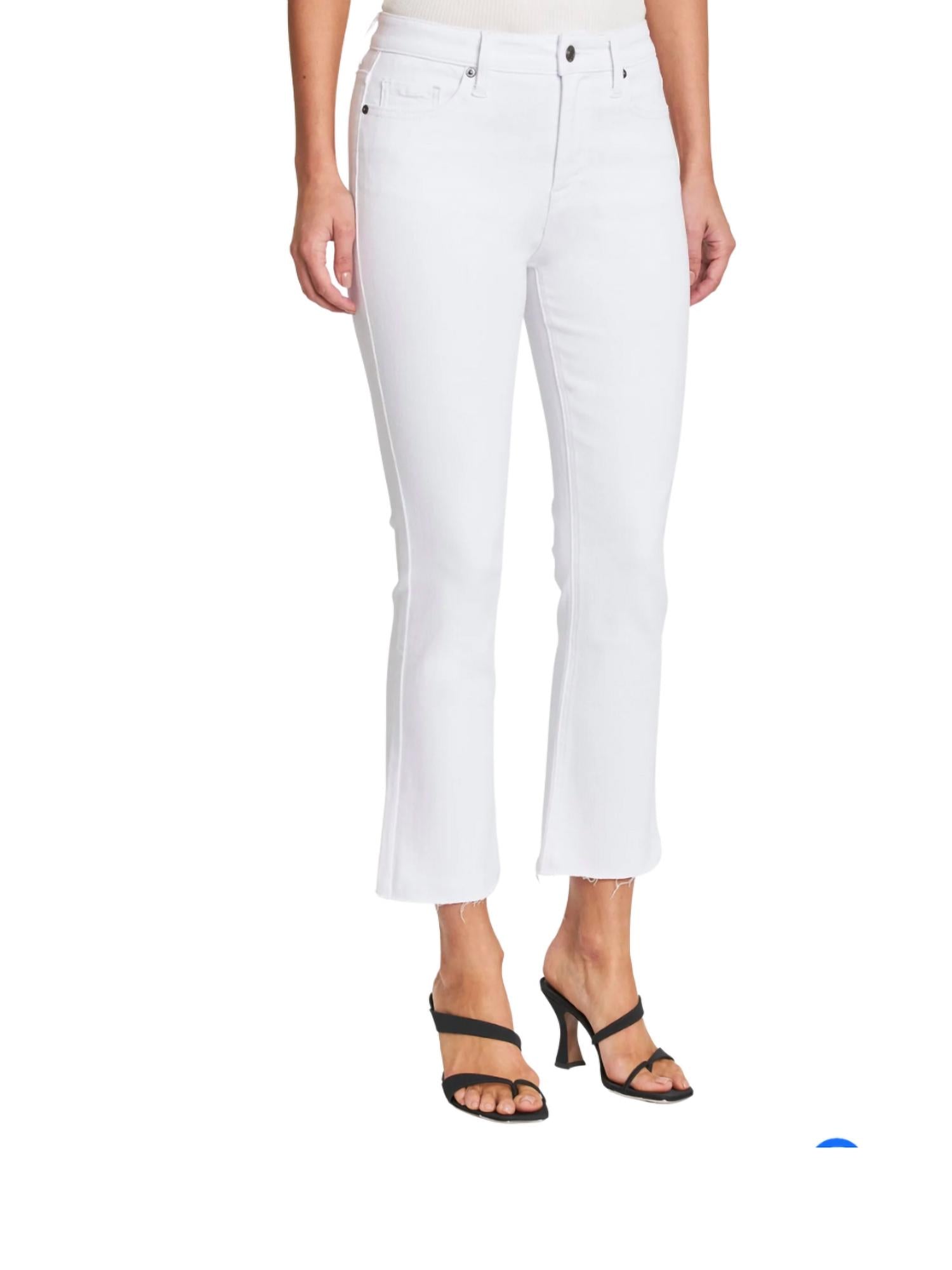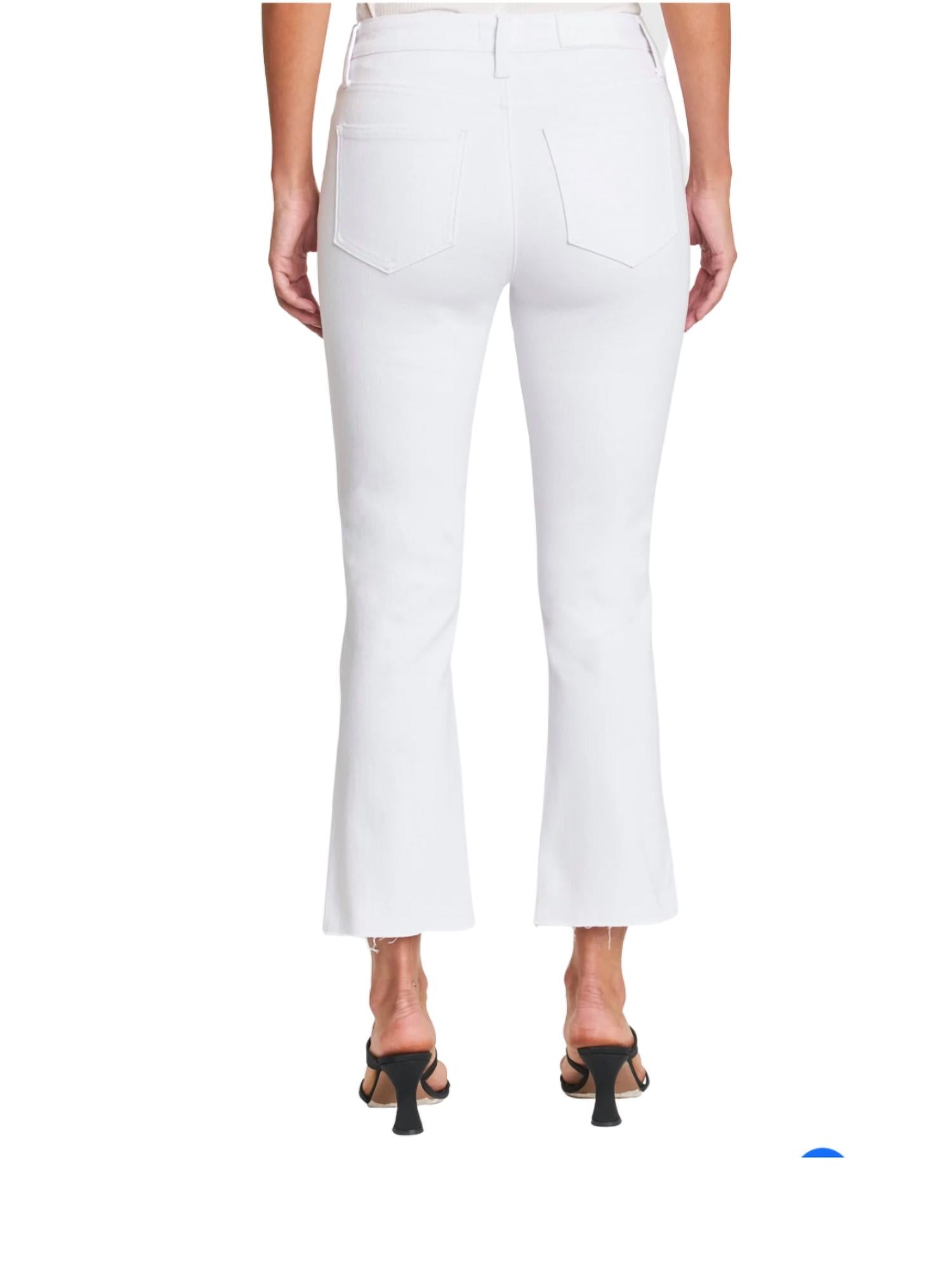 Experience ultimate style and comfort with the Lennon High Rise Cropped Boot by PISTOLA in the Blank Slate hue. These women's solid, high-rise denim pants feature a relaxed bootcut leg with a flattering rise of 11 inches and an inseam of 27 inches. Crafted from a cotton blend (72% Cotton, 17% Polyester, 9% Lyocell, 2% Spandex), they contour from the waist to the knee and flare at the ankle, complete with a raw hem. Pockets are included, and they feature a button closure for a secure fit, perfect for pairing with statement shoes or lounging in relaxed tops.