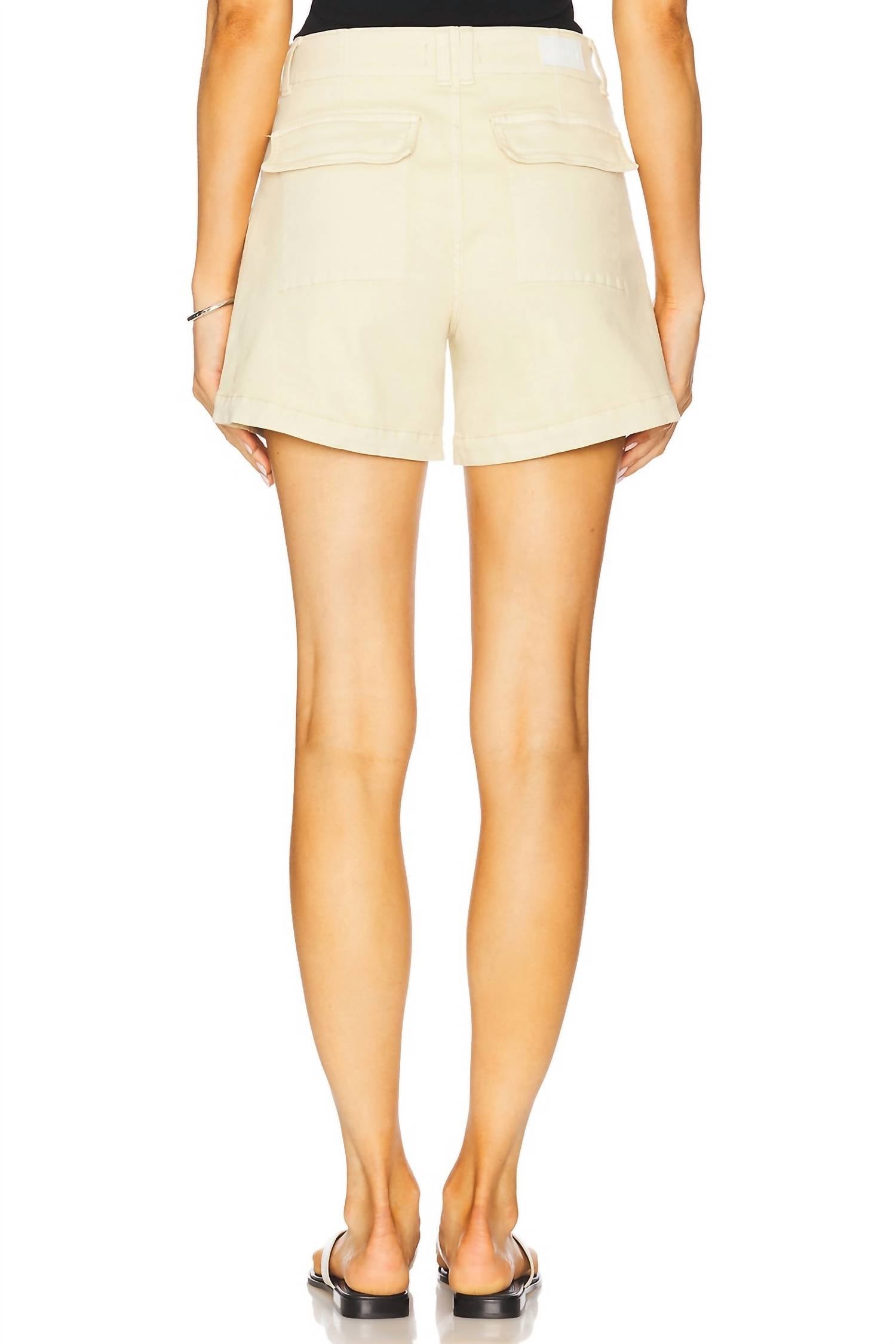 Meet the Marissa Short by PISTOLA, designed in a vibrant Custard Yellow for a pop of summer color. Crafted from a cotton blend consisting of 98% cotton and 2% spandex, these high-waist shorts offer comfort and style with a midweight stretch twill fabric. Originating from China, they feature a zip fly with a hidden hook and bar closure, practical side slant pockets, and back flap pockets with snap button closures, all finished with a contrast logo patch at the back. These shorts have an approximate length of 13.38 inches and are machine washable for easy care.