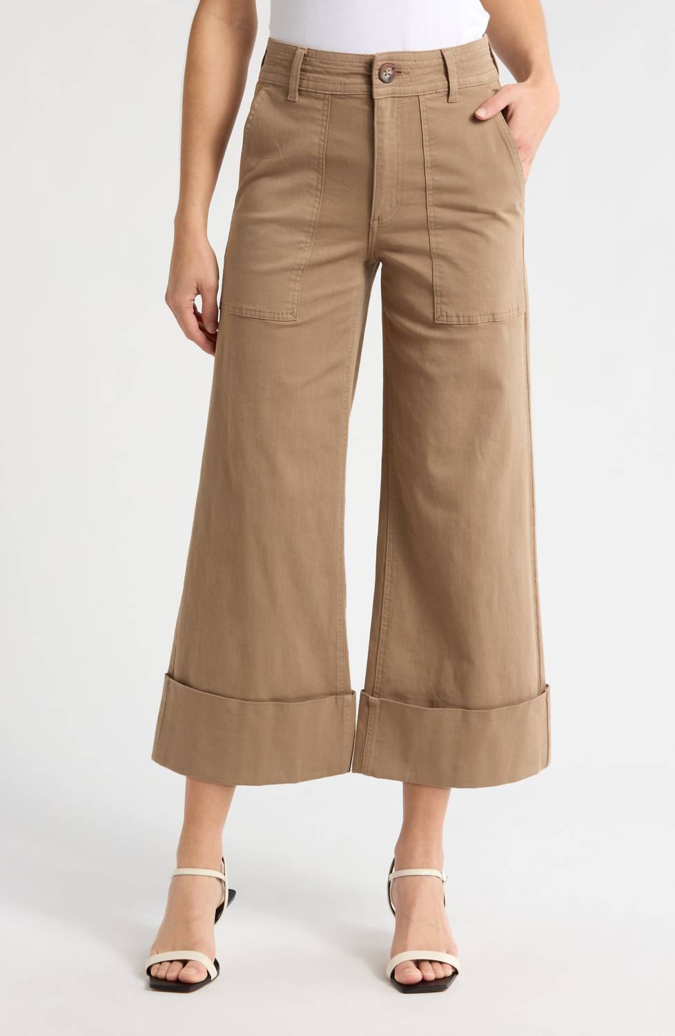 Meet the Maya Cuffed Hem Wide Leg Pants by PISTOLA, the epitome of chic, relaxed fit in a timeless biscuit shade. With their high-rise 11.75" rise and generous 25.5" inseam, these pants boast a wide leg style with a 23" leg opening. Crafted from a 98% cotton and 2% elastane blend, they feature a front zip, button closure, and both front and back patch pockets. Designed in Los Angeles and imported, these pants are machine washable and perfectly align with a '90s fashion trend, ideal for events like Thanksgiving or a music festival.
