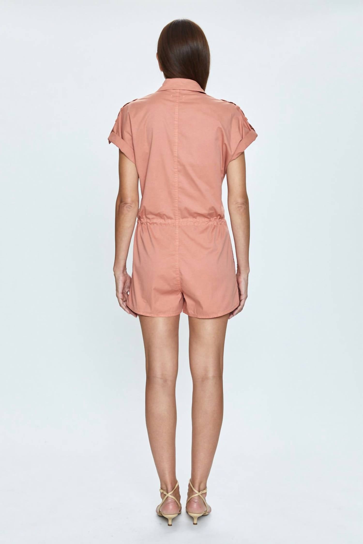 The perfect outfit choice when you you need something quick to throw on and still want to look efforlessly cool. Unleash effortless style with the Meg Zip Front Romper by PISTOLA, a vibrant Tumeric piece from the Jumpsuits & Rompers category. This short-sleeve romper is crafted from a comfortable cotton blend and features a practical zipper closure. Designed with thoughtful details like adjustable epaulettes and a drawstring waist for customizable fit, it includes pockets for added convenience. Ideally suited for vacation, this romper requires hand washing to maintain its quality, with an inseam of 2.5 inches.