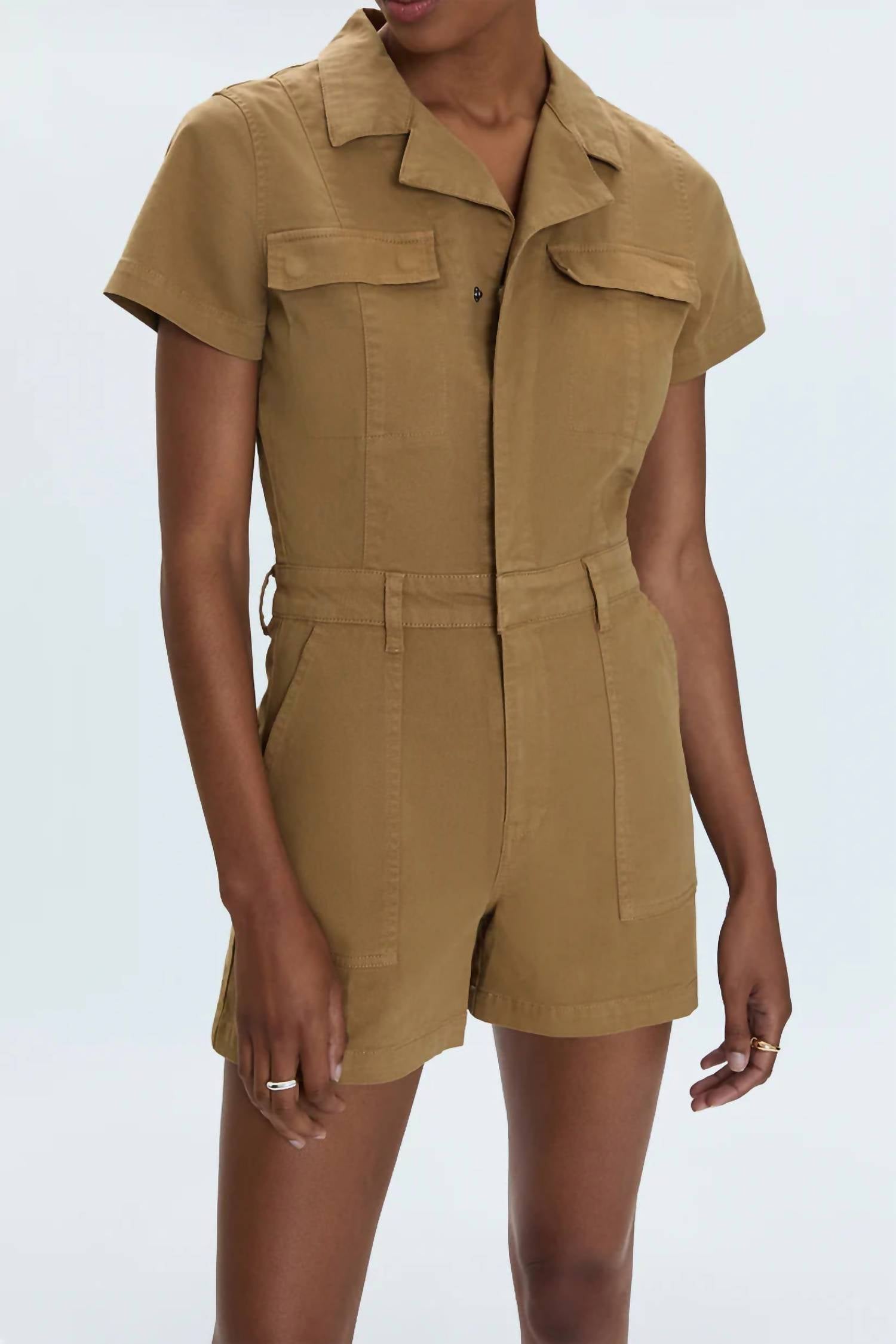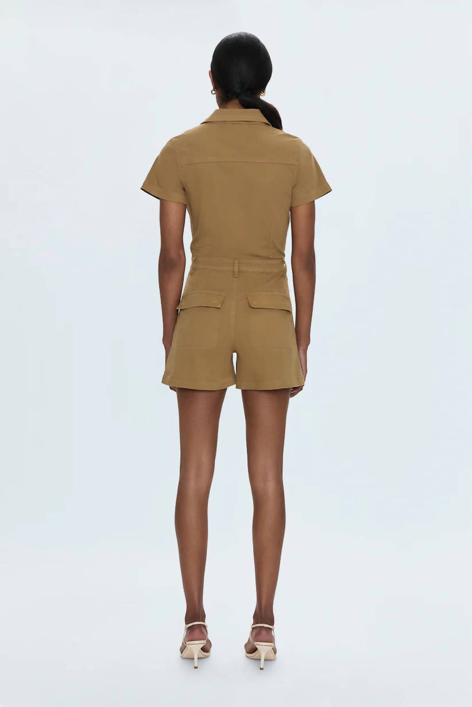 It doesn't take much for this one piece to look effortlessly cool. Add some statement jewelry to dress it up, or throw on some sneakers for a more casual vibe. Step out in style with the Morgan Short Sleeve Utility Romper by PISTOLA, a khaki masterpiece that seamlessly combines comfort and versatility. Made from a 98% cotton and 2% spandex blend, this romper features a comfort stretch twill for a flattering fit and ease of movement, complete with subtle utility details. Enjoy the practicality of snap closure and pockets, making it perfect for both casual outings and chic events. For care, simply machine wash cold, ensuring this imported piece remains a go-to in your wardrobe.
