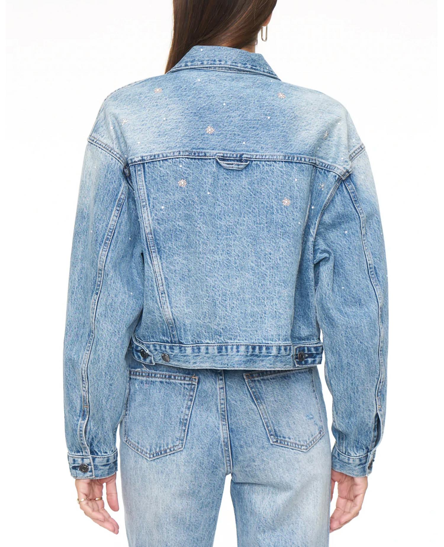 Throw this adorable jacket over just about anything for an effortlessly stylish look. The Shelby Embroidered Cropped Denim Jacket by PISTOLA offers a unique twist on the classic trucker style. Crafted from 100% cotton, this jacket features exquisite embroidery and beaded details across the shoulders and back, making it a standout piece. Its long sleeves and button closure enhance its classic charm, while the light blue wash adds a touch of timeless elegance. Care for this stylish piece with a simple machine wash.