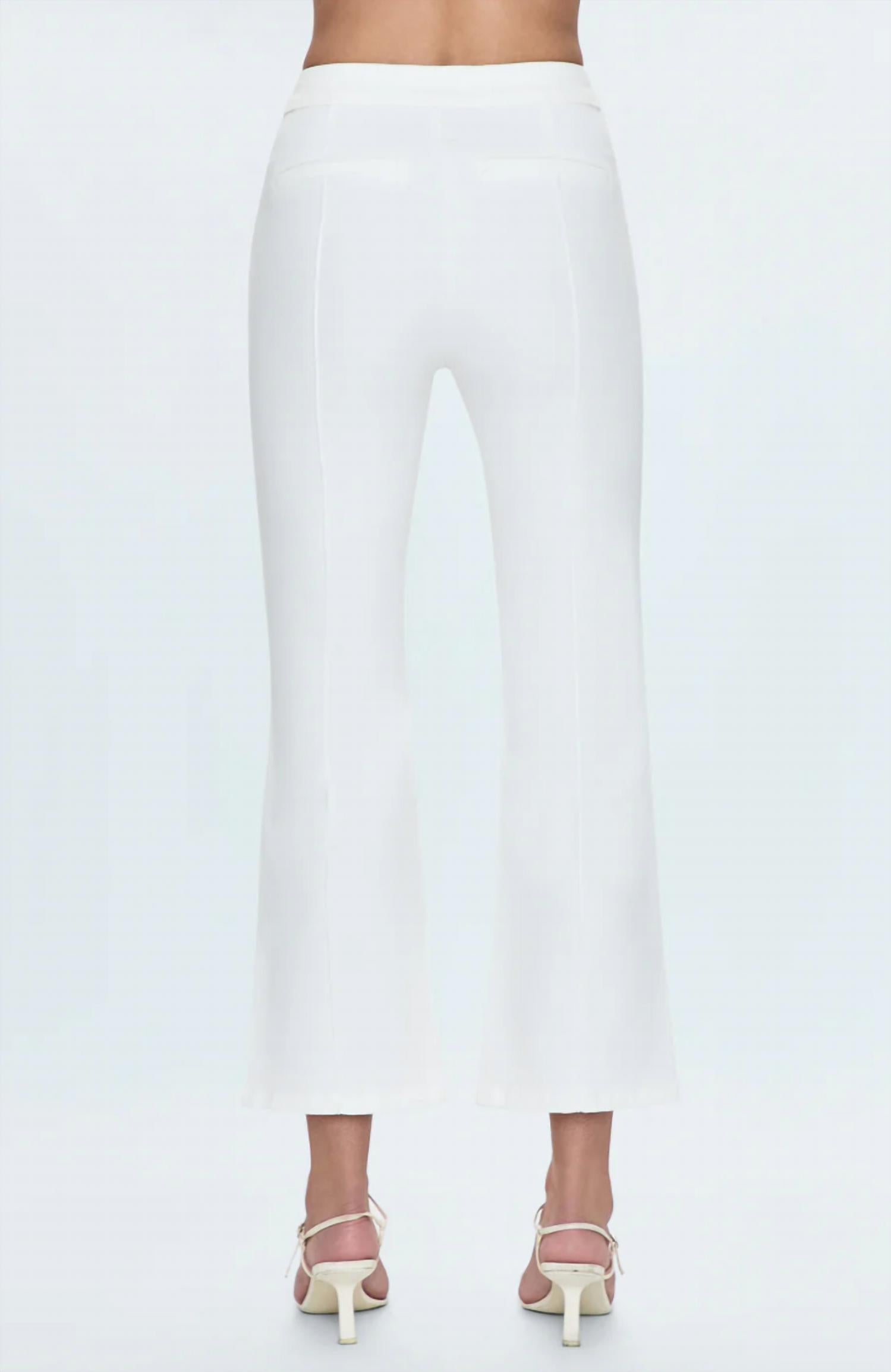 Slightly flared pants are all the rage right now and these are no exception. Pair these with your favorite tee for a more casual look, or with your favorite button-up blouse for an evening out. Discover the Simone Kick Flare Ponte Pants by PISTOLA, crafted in a stylish white tone ideal for day to night wear. These pants feature a mid-rise waist with a 10.25" rise and 27" inseam, embodying a sleek bootcut leg with a slim fit. The fabric blend is 98% cotton and 2% spandex, designed for a comfortable stretch, and includes practical slant front and welt back pockets. Enjoy easy pull-on closure and machine wash care with tumble dry convenience, making them a perfect travel companion for summer adventures.