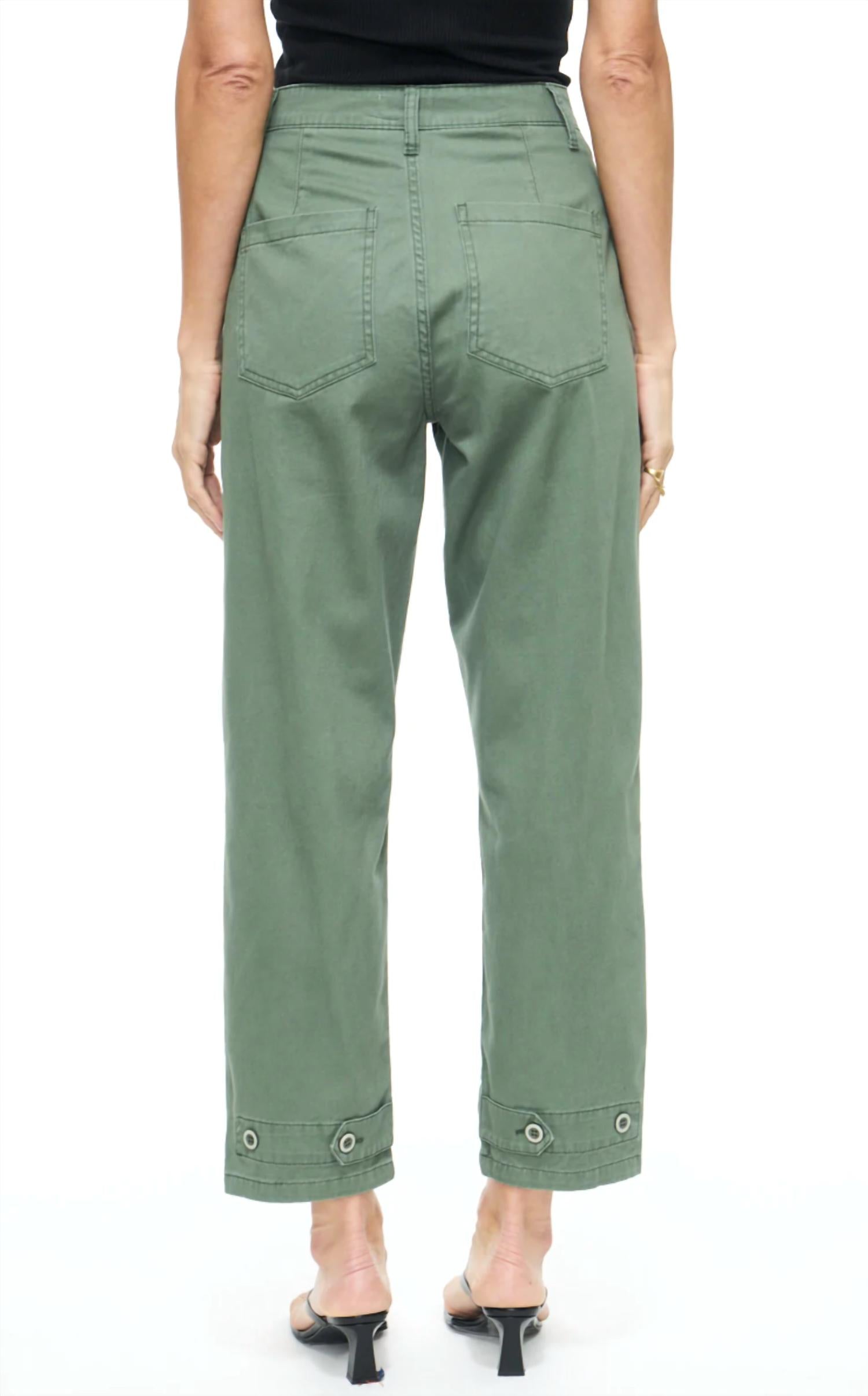 The Tammy is a high rise straight leg trouser with exposed buttons and utility details.This versatile style is made with 100% cotton.The Tammy can be cinched at the back of each ankle — wear uncinched with a sneaker or boot, or cinched with a dainty heel.True to size100% CottonWash coldImported