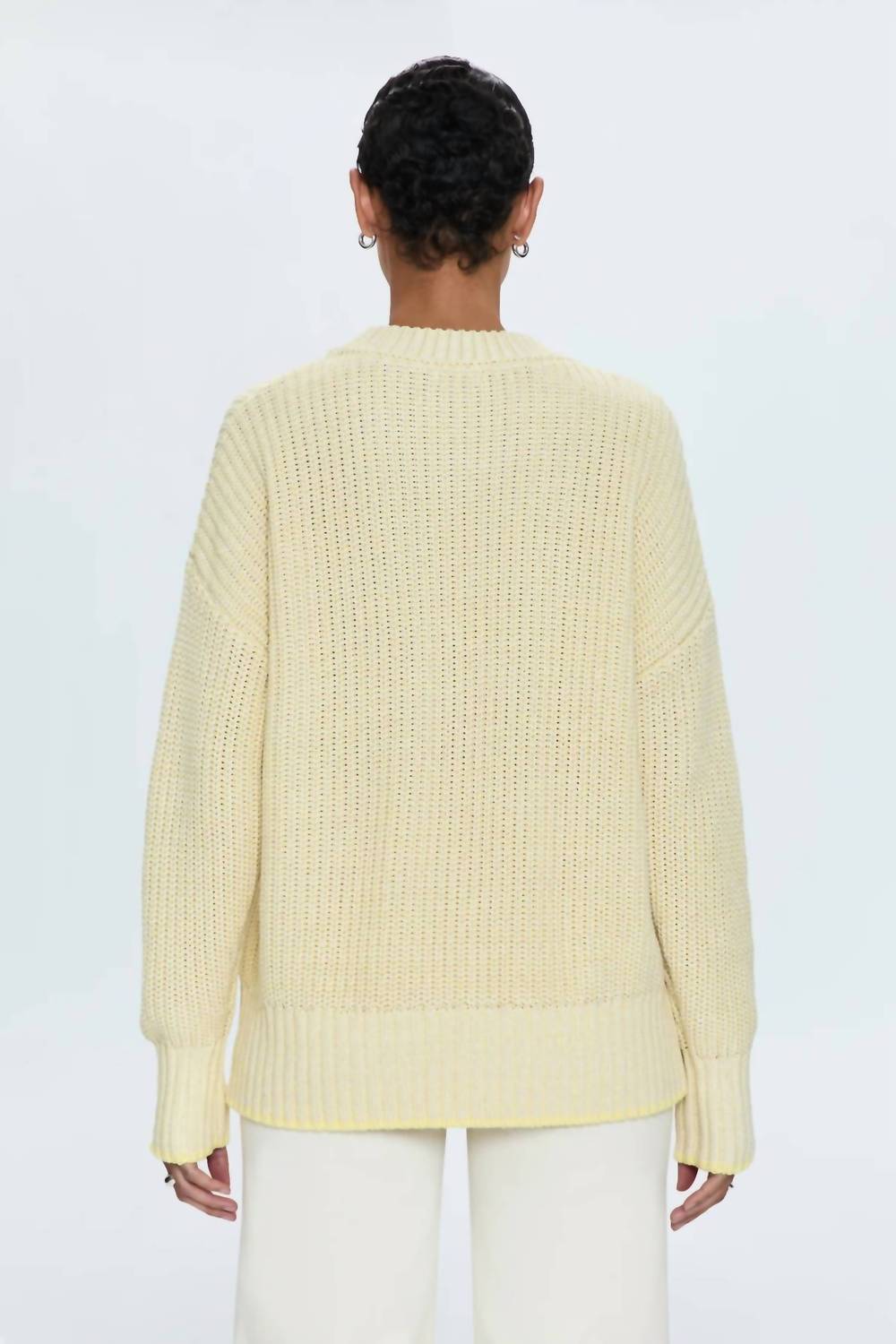 Stay warm and stylish in this versatile and effortlessly cool knitwear staple. Wear it alone or layered, it's the perfect sweater for the season and you'll wish you had it in every color. Enhance your wardrobe with the Tina Pullover Sweater by PISTOLA, a beautiful example of texture and comfort in soft yellow. This piece features a waffle knit pattern, long sleeves, and a classic crew neckline, complemented by ribbed cuffs and hem. Crafted from 100% cotton, it offers a breathable, cozy fit perfect for casual outings. With a convenient pull-on design, it's ideal for easy styling. Care: Hand wash.