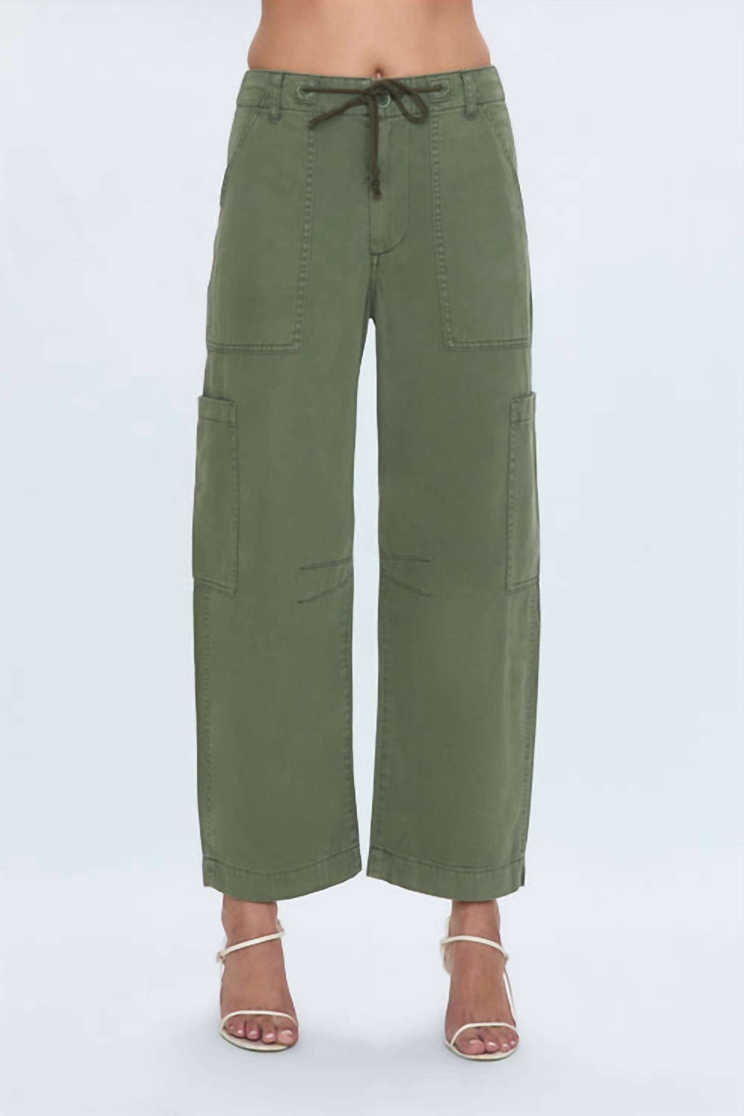 Elevate your streetwear style with the Women's Sabrina Curved Utility Pants from Pistola, a stunning addition to your summer wardrobe. These wide-leg pants come in a solid Meadow hue, perfect for vacation outings and casual days alike. Closure is secured with a button, adding a classic touch to this modern design. While wash and dry instructions aren't specified, these pants embody effortless style and functionality with their utility appeal. 100% Cotton