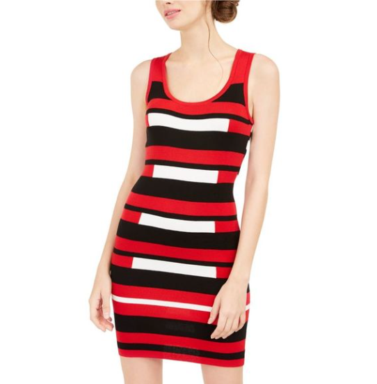 Planet Gold Junior's Striped Body con Sweater Dress Red Size Medium