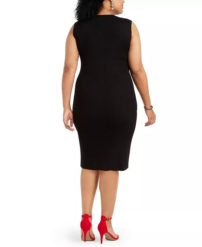 Approx. model height is 5'10" and she is wearing a size 1X|Approx. 37-1/2" long from center back neck to hem. Length varies 1/4" between sizes|V-neck; Bodycon silhouette|Pullover styling|Colorblocked design with grommets and lace-up front; ribbed throughout|Unlined|Rayon/polyester