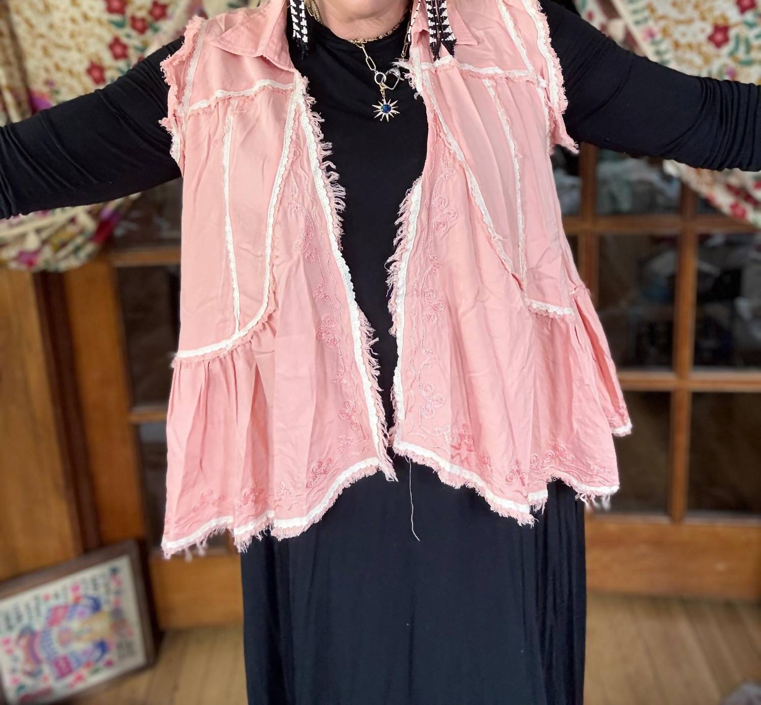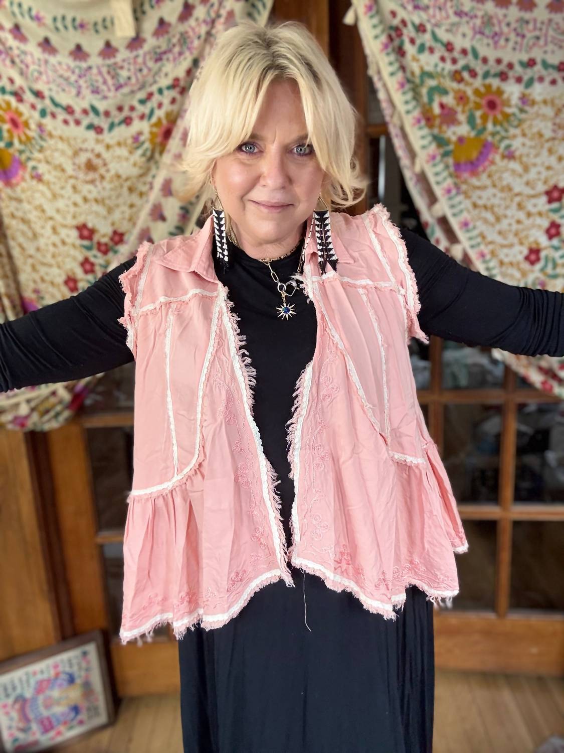 Throw this vest over an all black outfit for a perfectly polished look. Meet the Emery Vest by POL, a chic addition to your summer wardrobe in a beautiful peach coral hue. This sleeveless vest is crafted from 100% cotton, offering a relaxed fit that layers effortlessly for any vacation occasion. With dimensions tailored for comfort, this stylish piece measures 25" in length and features a classic collar. While specific care instructions aren't provided, it's easy maintenance and breathable material make it a vacation-ready favorite.