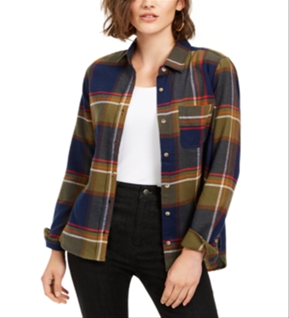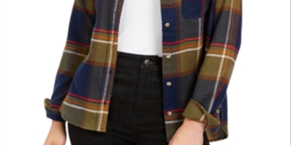 Polly & Esther Junior's Plaid Utility Shirt Navy Multi Size Large