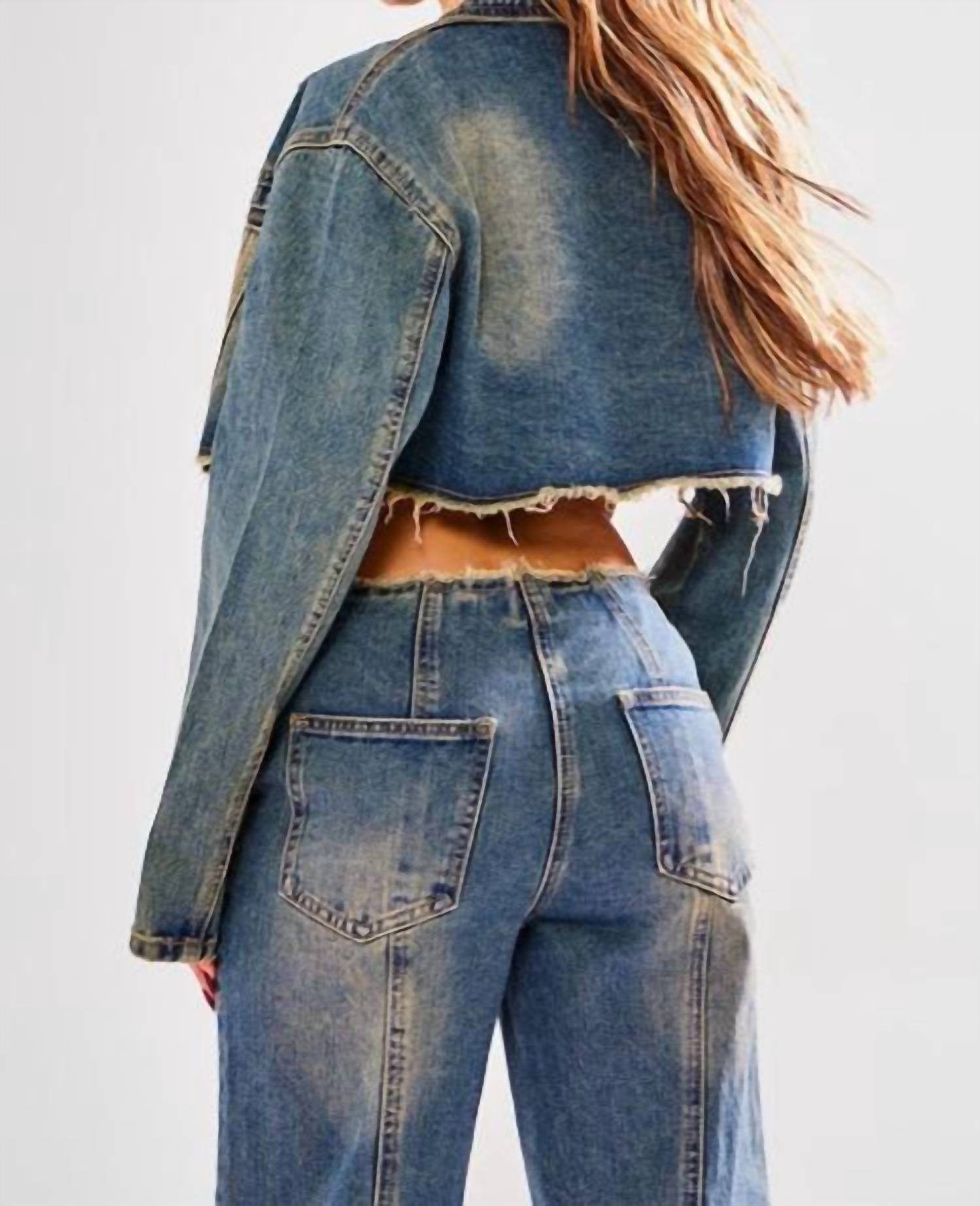 The perfect jean jacket for those slightly crisper days between seasons. This petite denim jacket is a stylish and versatile addition to any wardrobe. Featuring a solid wash with a cropped length, long sleeves, and a zip closure, it offers a casual yet polished look. The raw hem adds a trendy edge, while the classic collared neckline keeps it timeless. Perfectly tailored for petite fits, this jacket is easy to care for and ideal for mixing fashion-forward pieces with everyday basics.