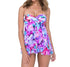 This Swimsuit features a Twist front. Soft cup bra with adjustable/removable straps, minimize bust with bandeau neckline, tummy control swimsuit with floral print and flyaway design. 73% nylon 27% spandex. 94% nylon 6% spandex.