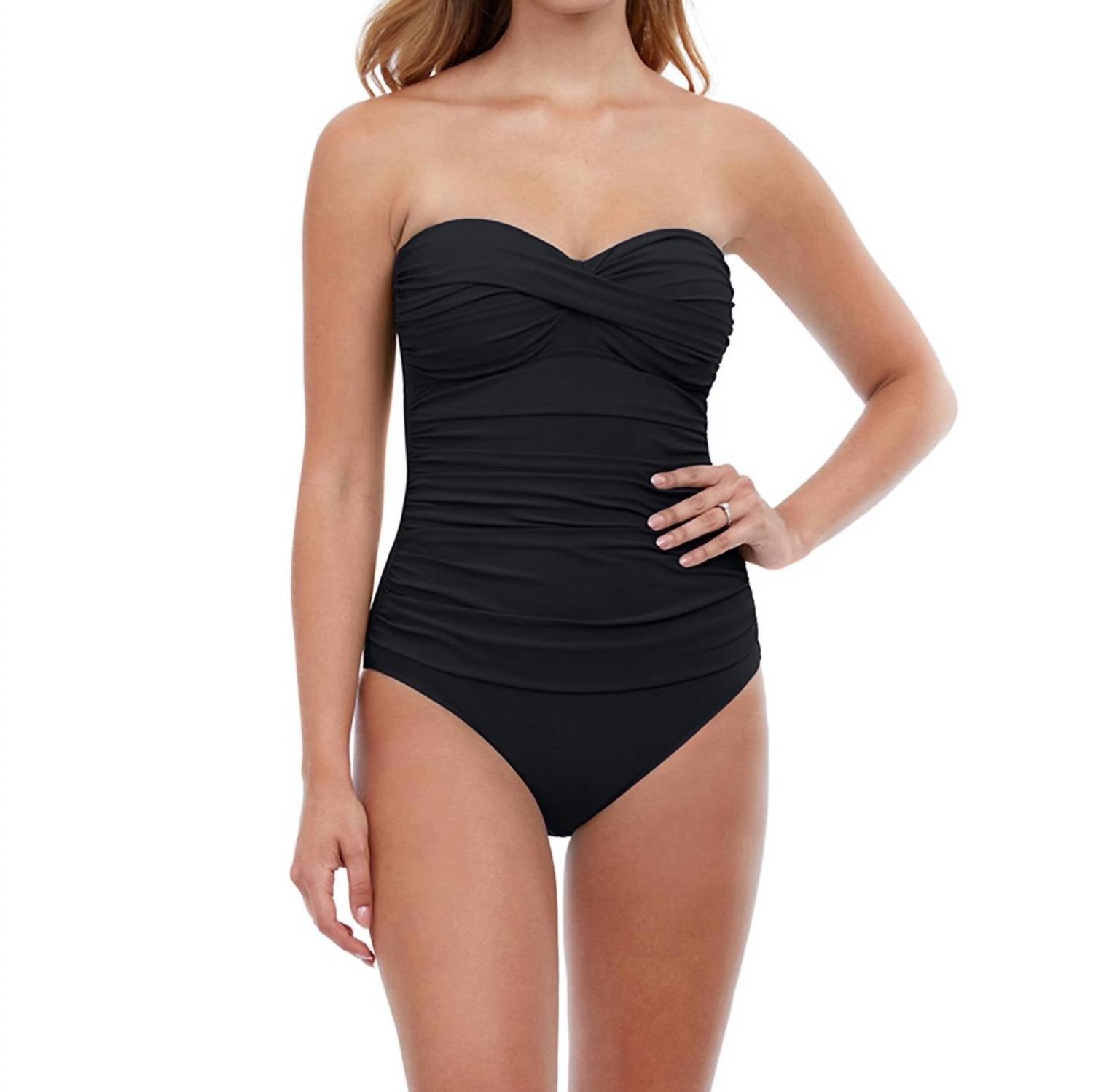 Profile By Gottex - Shirred Front Bandeau Strapless One Piece Swimsuit