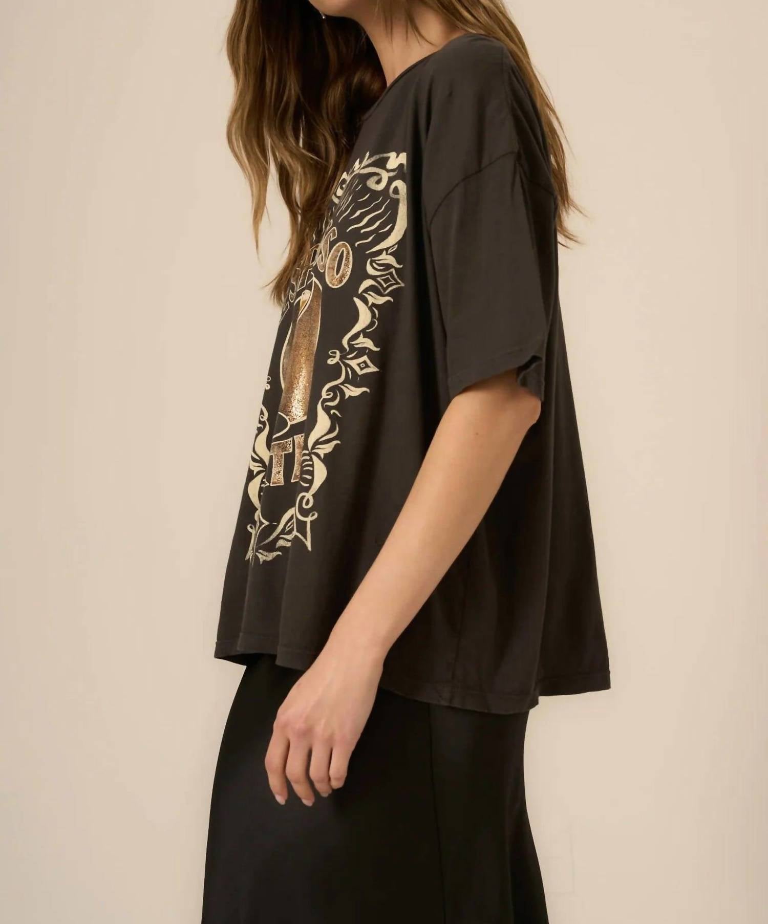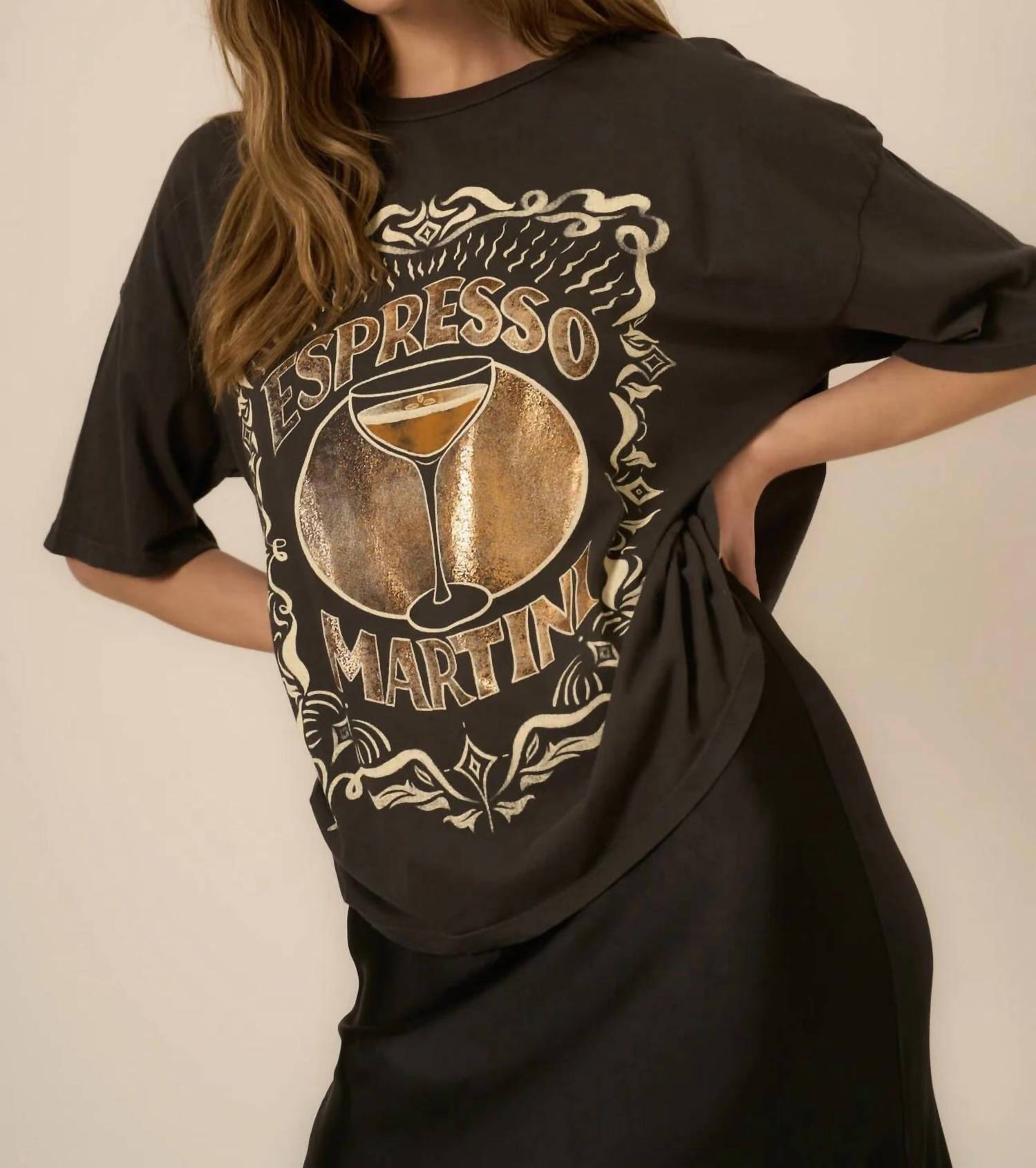 Look no further, you just found your perfect tee! Designed with short sleeves and made from ultra-soft 100% cotton, this classic crewneck tee offers a relaxed fit and a playful espresso martini graphic. Measuring 24" in front length from the shoulder, it ensures all-day comfort with a laid-back vibe. Easy to wear with a pull-on closure, this tee is machine washable and should be laid flat to dry.