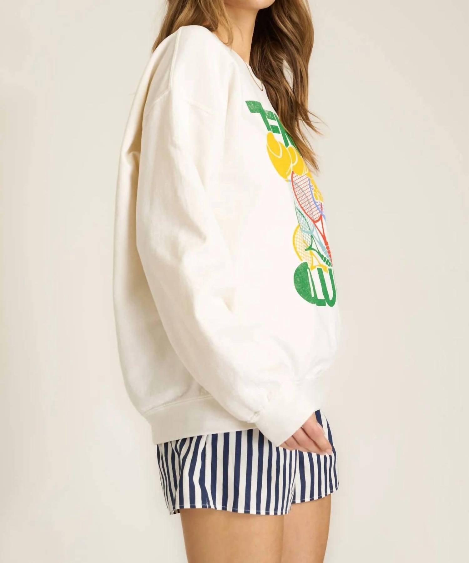 This long sleeve sweatshirt in a serene Snowflake hue offers a relaxed silhouette with a crew neckline and drop shoulders, crafted from 50% cotton and 50% polyester soft terry fabric. Enjoy a garment length of 26 inches, and slip this pull-on piece over any ensemble for a cozy feel. Please machine wash cold and lay flat to dry to maintain its quality, and consider sizing up for a trendy oversized fit.