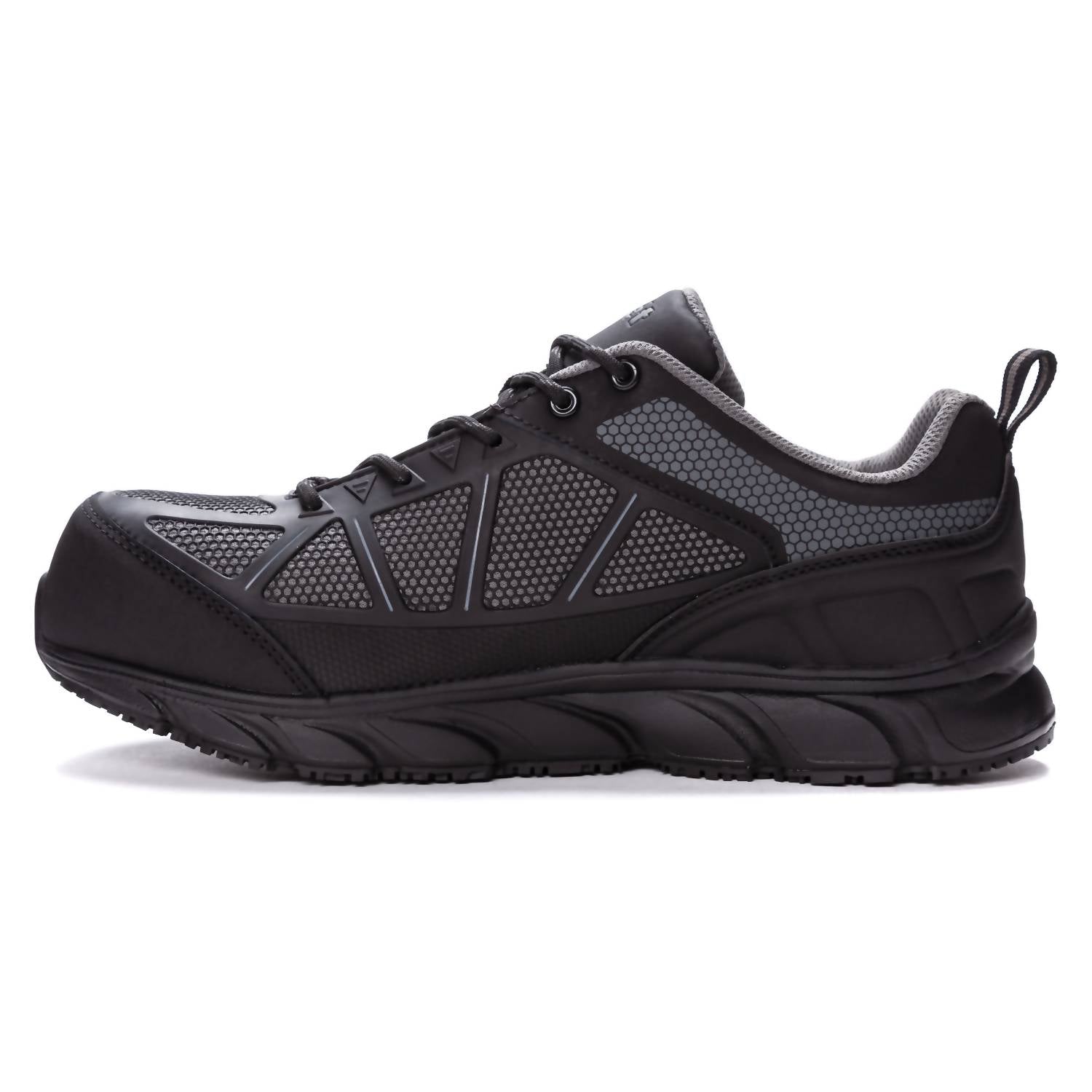 Step into reliability with the PROPET Men's Seeley 2 Work Boot in sleek black and grey, perfect for the demands of the job. Featuring a removable footbed to accommodate custom orthotics and round toe design, these boots are engineered for both comfort and functionality. With a waterproof Sealtex® construction, slip-resistant outsoles, and a composite toe safety rating meeting ASTM I75 and C75 standards, your feet stay protected in every work environment. Designed without compromise, these can handle the rigors of demanding conditions with puncture resistance confirmed by ASTM testing.