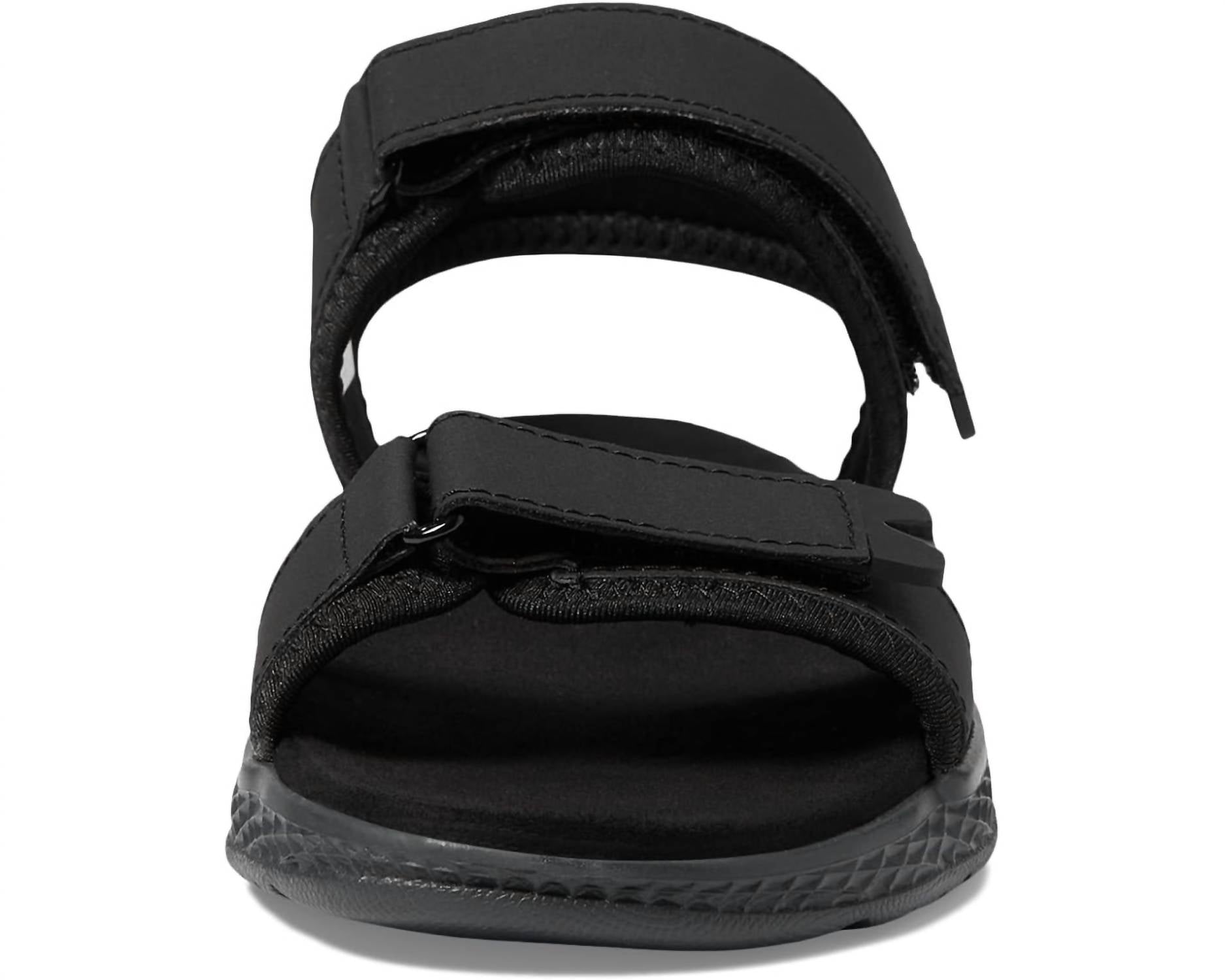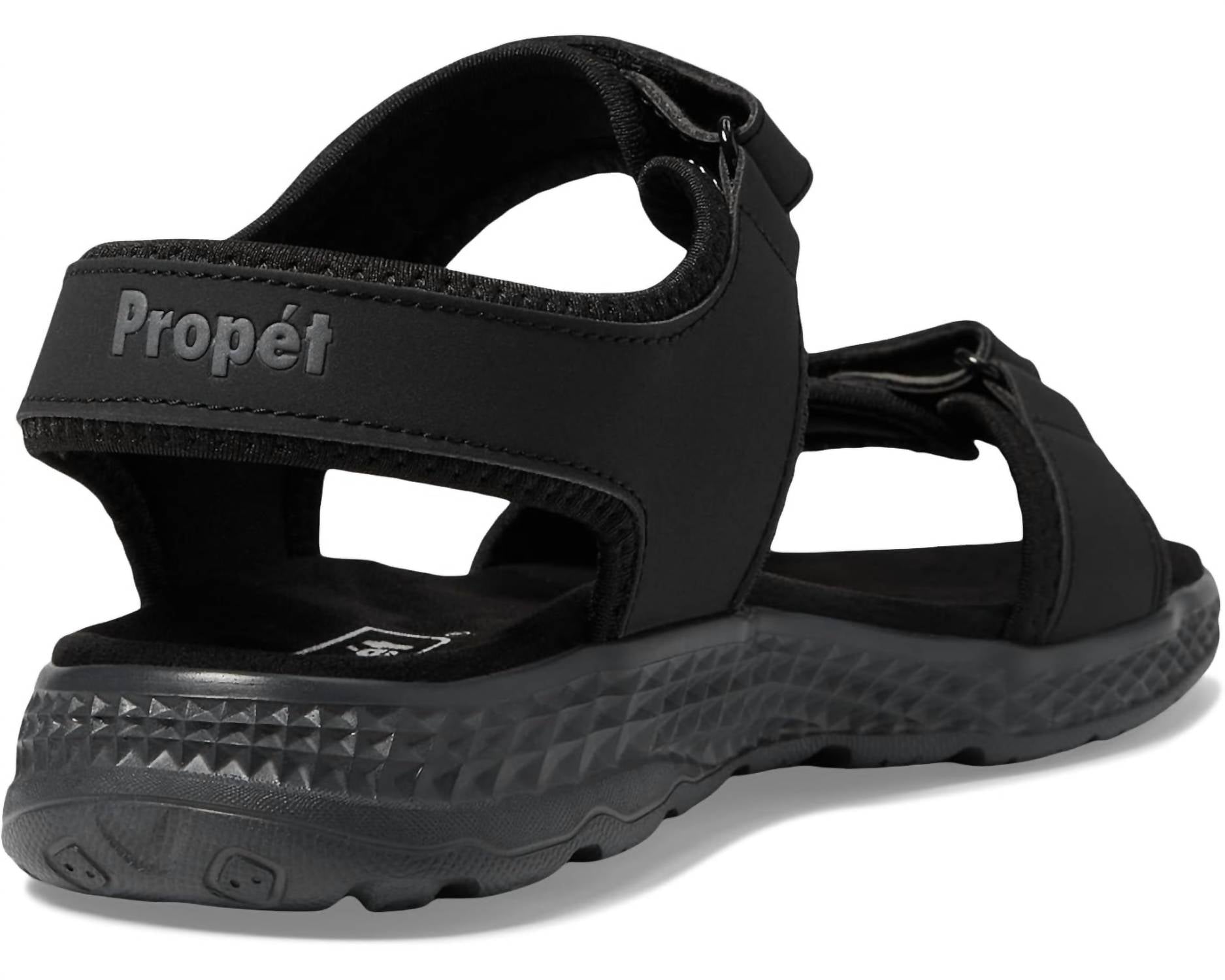 This sandal will take you from brunch to dinner and everything in between. Step into comfort and style with the Women's Aspire Sandal by PROPET in sleek black. These sandals feature adjustable straps with a hook-and-loop closure, ensuring a perfect fit, and are crafted with a durable PU upper. The lightweight design includes a cushioned EVA footbed and foam insole, providing all-day comfort, while the 1.5-inch heel height and EVA outsole offer superior traction on any terrain. Ideal for summer adventures, these sandals showcase an open toe and flat heel design.