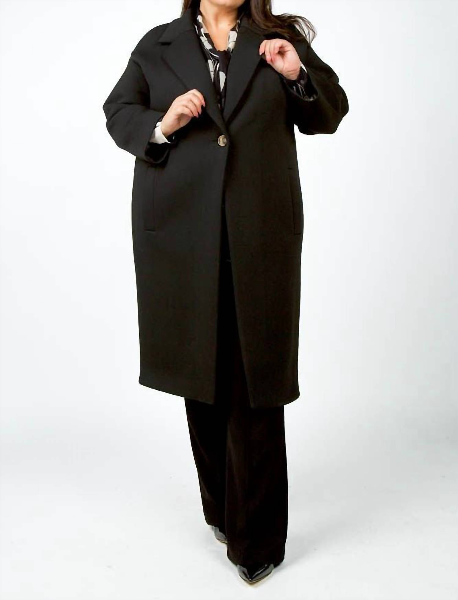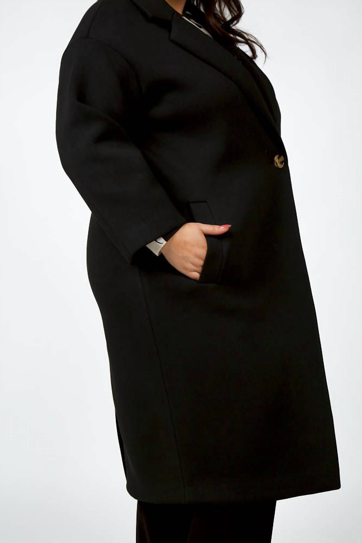 This women's trench coat features three-quarter sleeves and a 3/4 length style that seamlessly transitions from day to dinner. Crafted from a neoprene "scuba-like" fabric, it offers a unique texture and unparalleled style. Button closure. Machine wash, lay flat to dry.