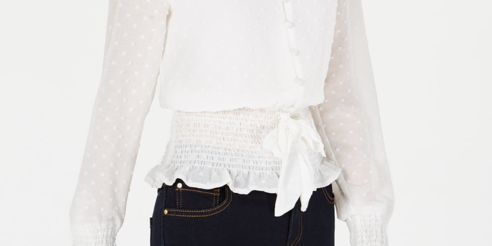 Q & A Women's Smocked Tie Front Blouse White Size Large