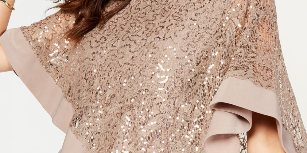 R M Richards Petite Women's Sequined Lace Cape Overlay Short Sleeve Boat Neck Short Party Sheath Dress Petites Taupe Size 14 P
