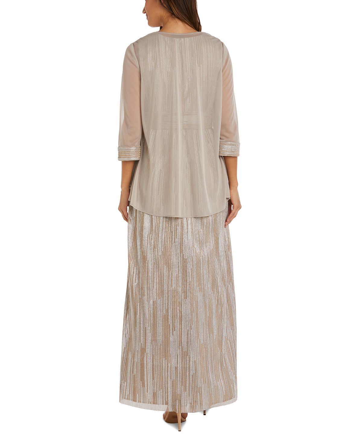 R & M Richards Women's 2 Pc Metallic Jacket & Dress Brown Size 12Petite