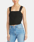 The Reva top from RACHEL Rachel Roy is perfectly cropped at the waist and finish with a chic| square neckline and wide straps.| Hits at waist; approx. 19 long| Square neckline; back zipper with hook-and-eye closure| Shell; polyester/elastane; lining; polyester| Machine washable| Imported