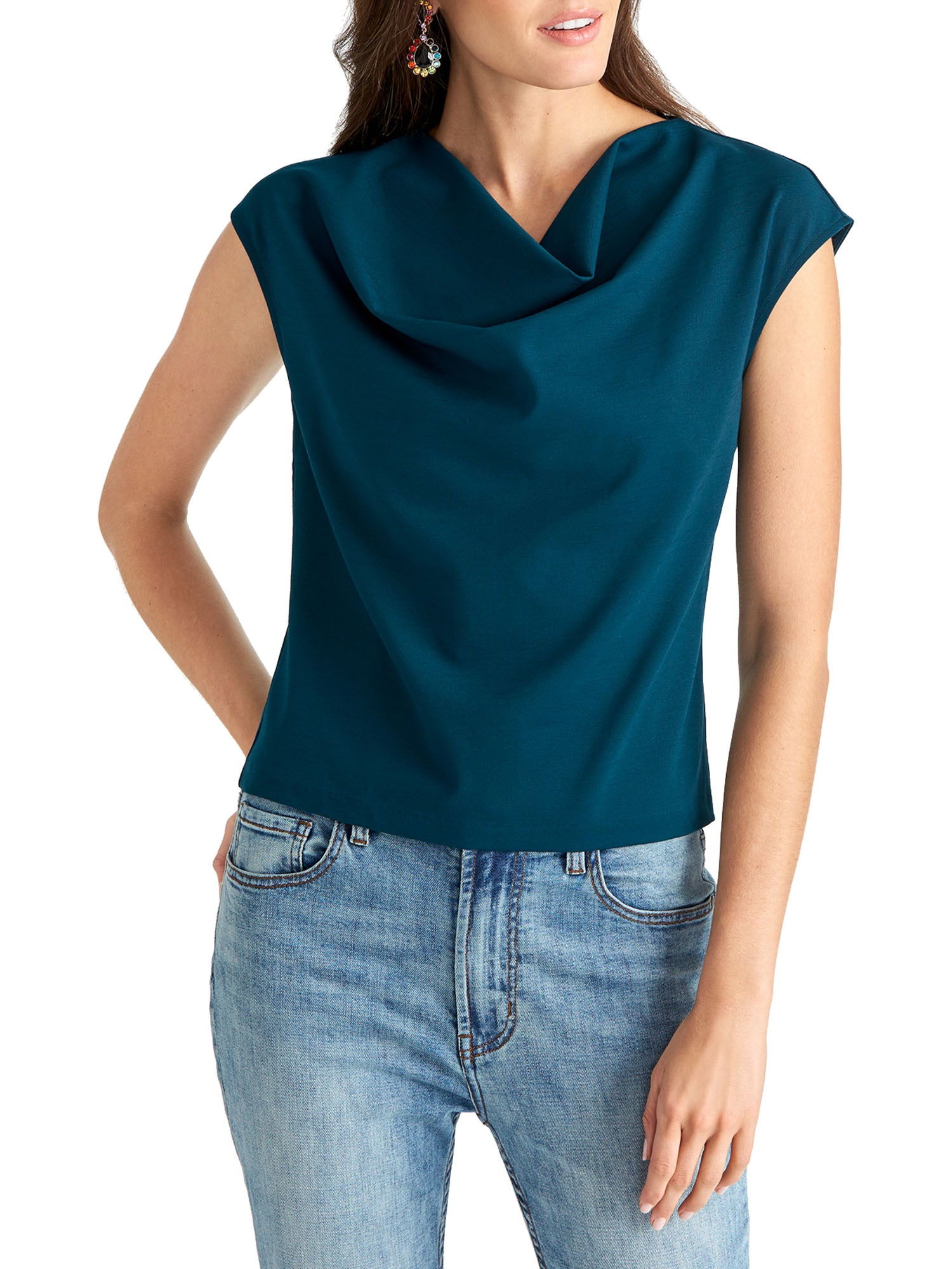 Rachel Roy Women's Slub Cowl Neck Pullover Top Blue Size Large