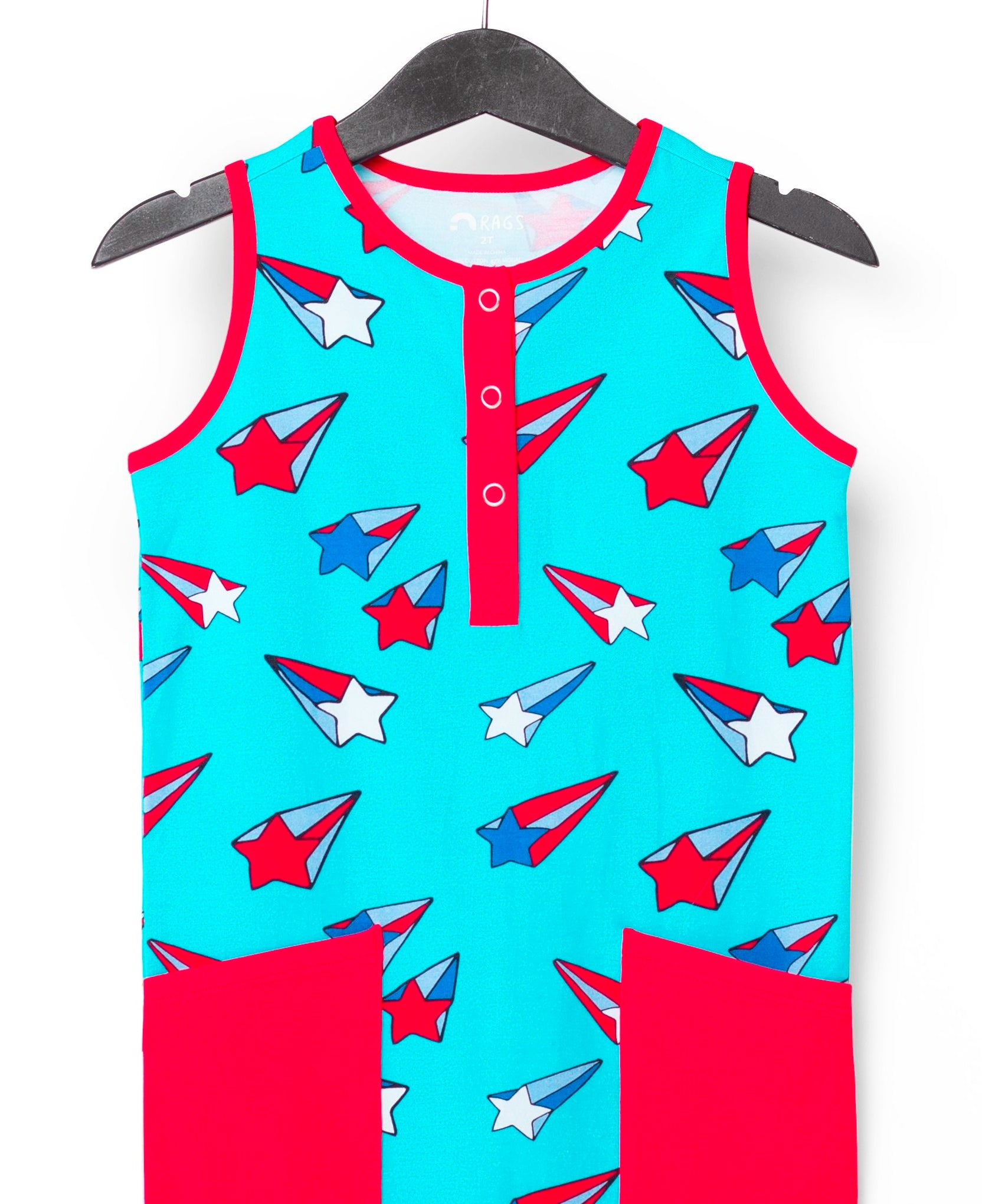 RAGS Apparel Kid's Tank Henley Capri Hip Pocket Rag Romper Blue Size 2T