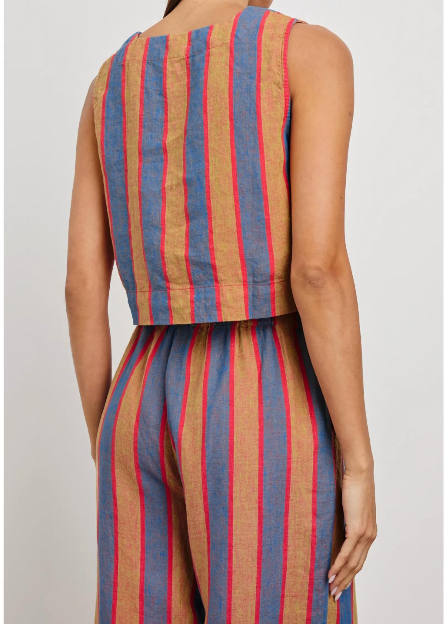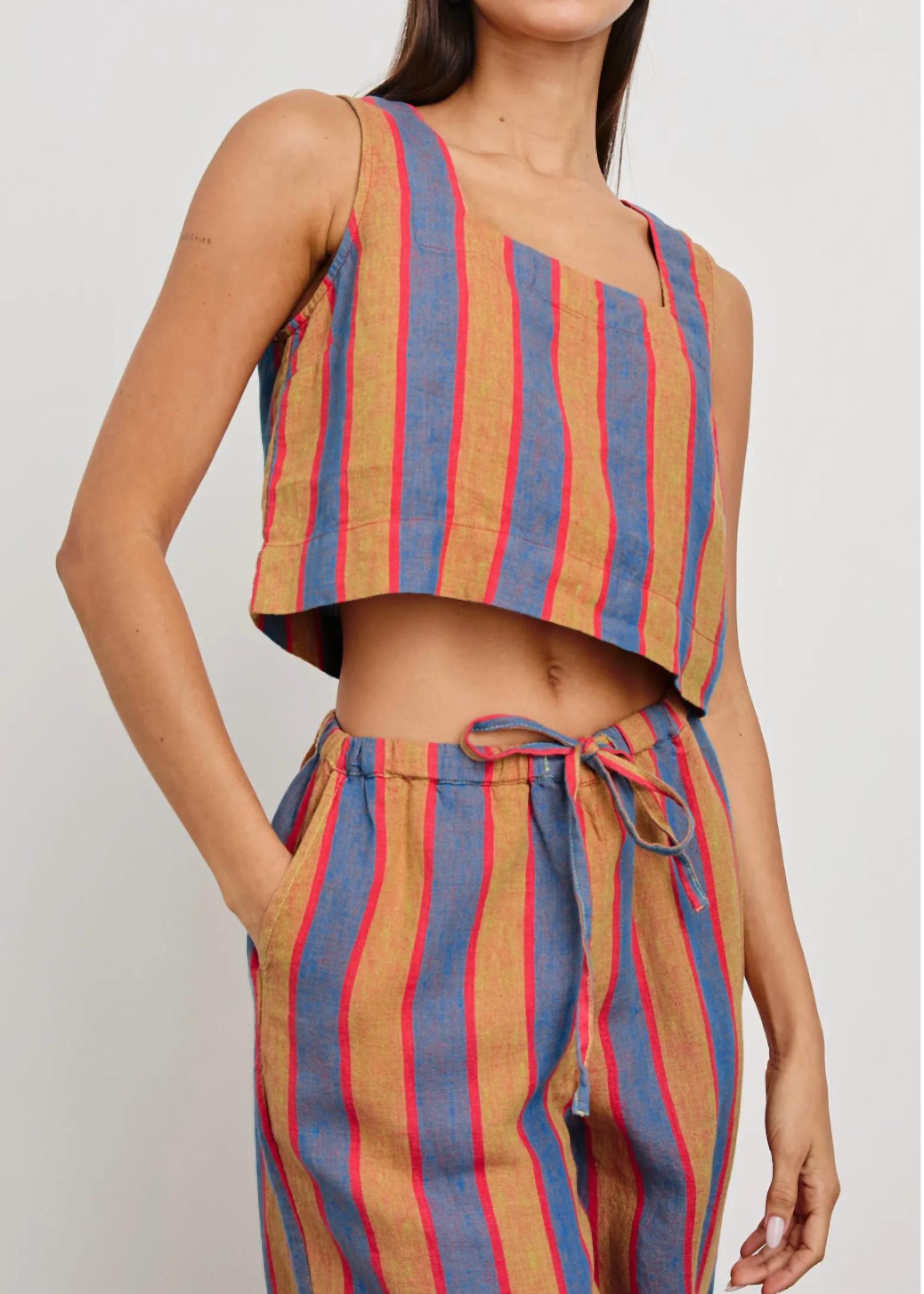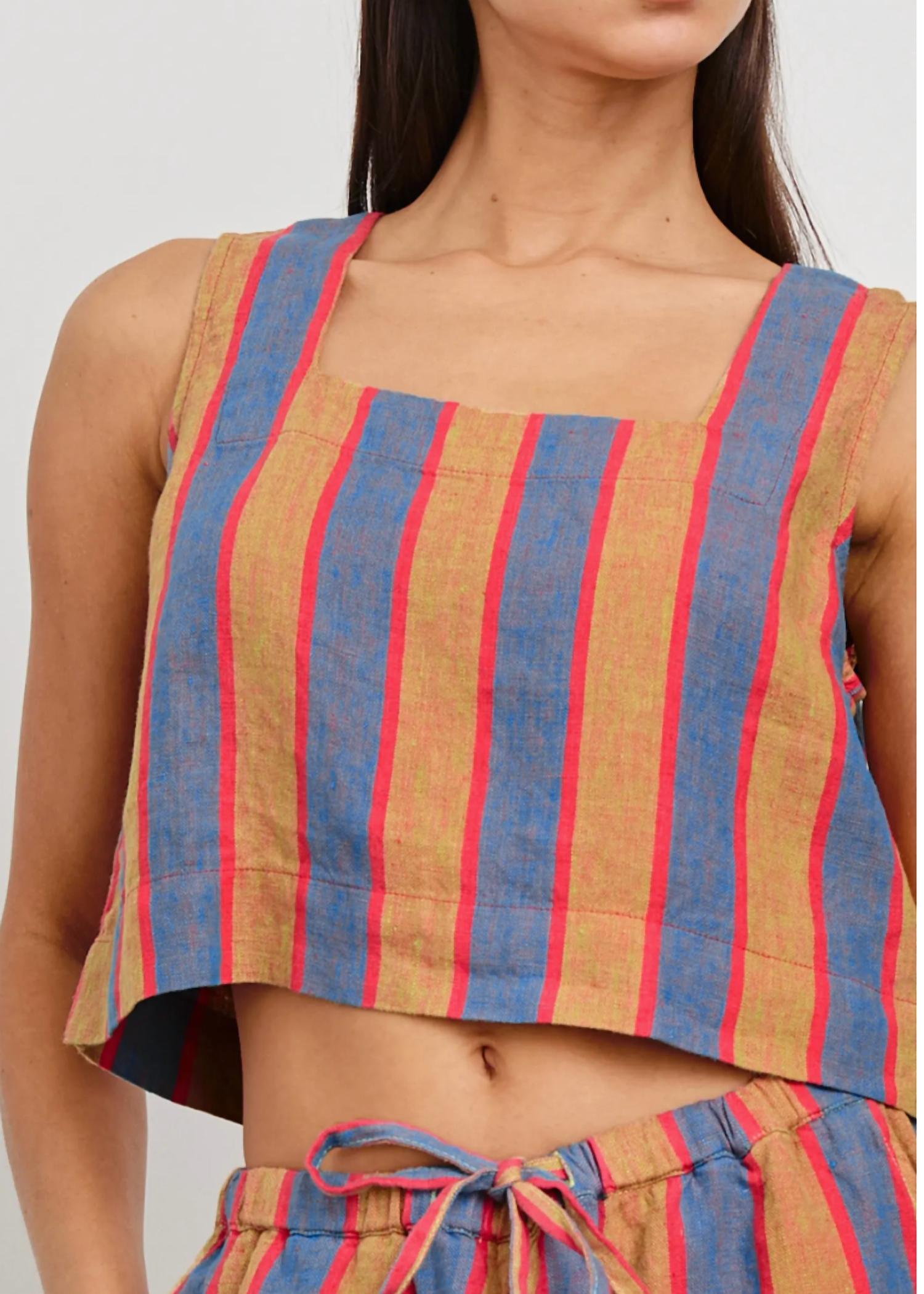 Fit, fabric and functionality. This tank top checks all the boxes. Embrace the sunny days with the Rails Akira Tank, a chic striped linen top perfect for warm-weather outings. This sleeveless tank features a modern square neckline and wide shoulder straps, offering a stylish cropped silhouette with a 19" length from size small. Crafted from 100% linen, it provides breathable comfort in the Rio Stripe pattern. With a pull-on closure, this sophisticated piece requires dry cleaning for care.