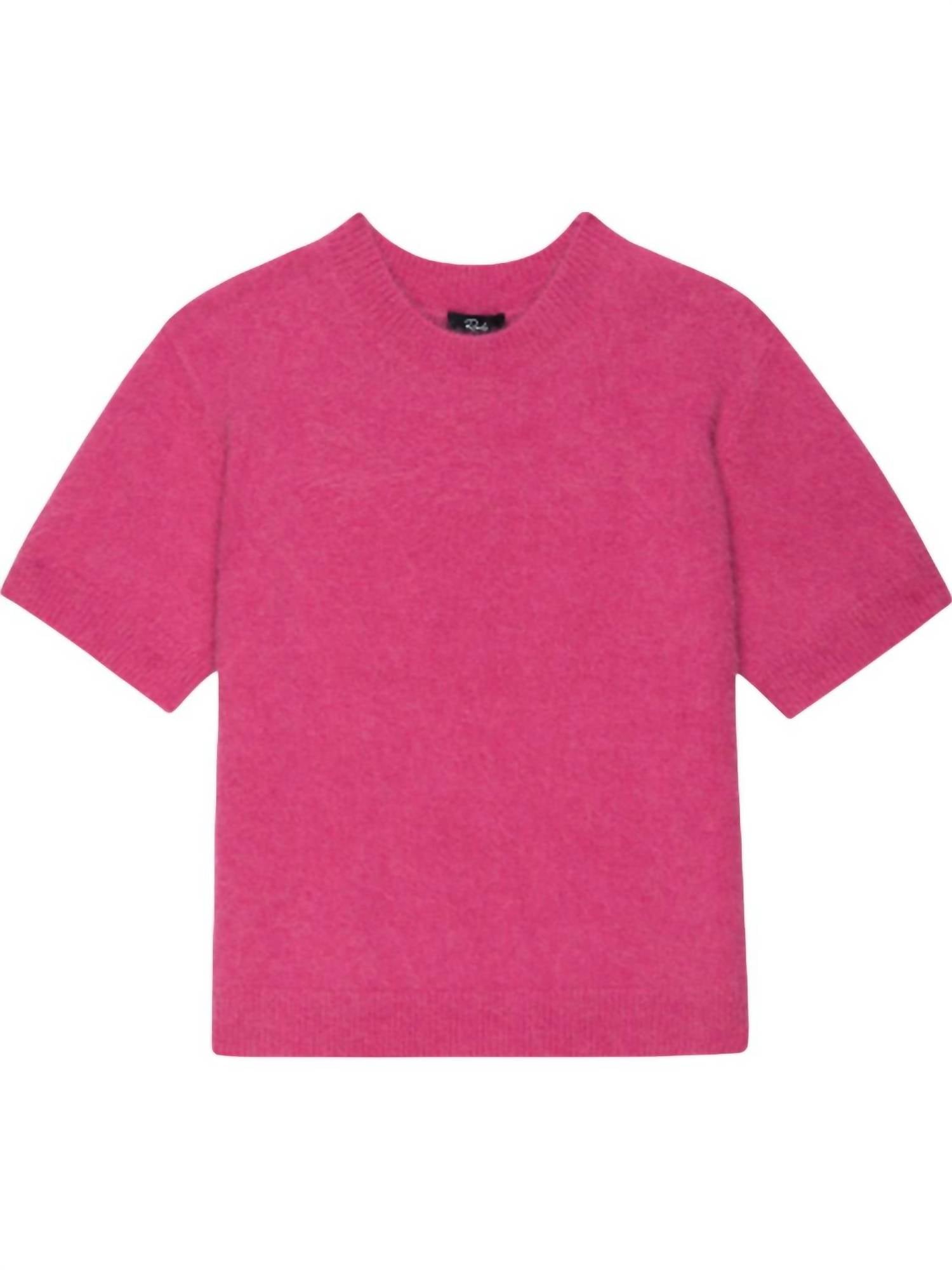Stay warm and stylish in this versatile and effortlessly cool knitwear staple. Wear it alone or layered, it's the perfect sweater for the season and you'll wish you had it in every color. The Briar Knit Top by Rails is an elegant addition to any wardrobe, presented in a distinctive Carmine hue. This women's short sleeve top features a textured pattern and a classic crewneck style. Comfortably pull on this crew neck crafted from a luxurious blend: 58% Alpaca, 25% Acrylic, 15% Nylon, and 2% Spandex. Ensure longevity by opting for dry clean care.