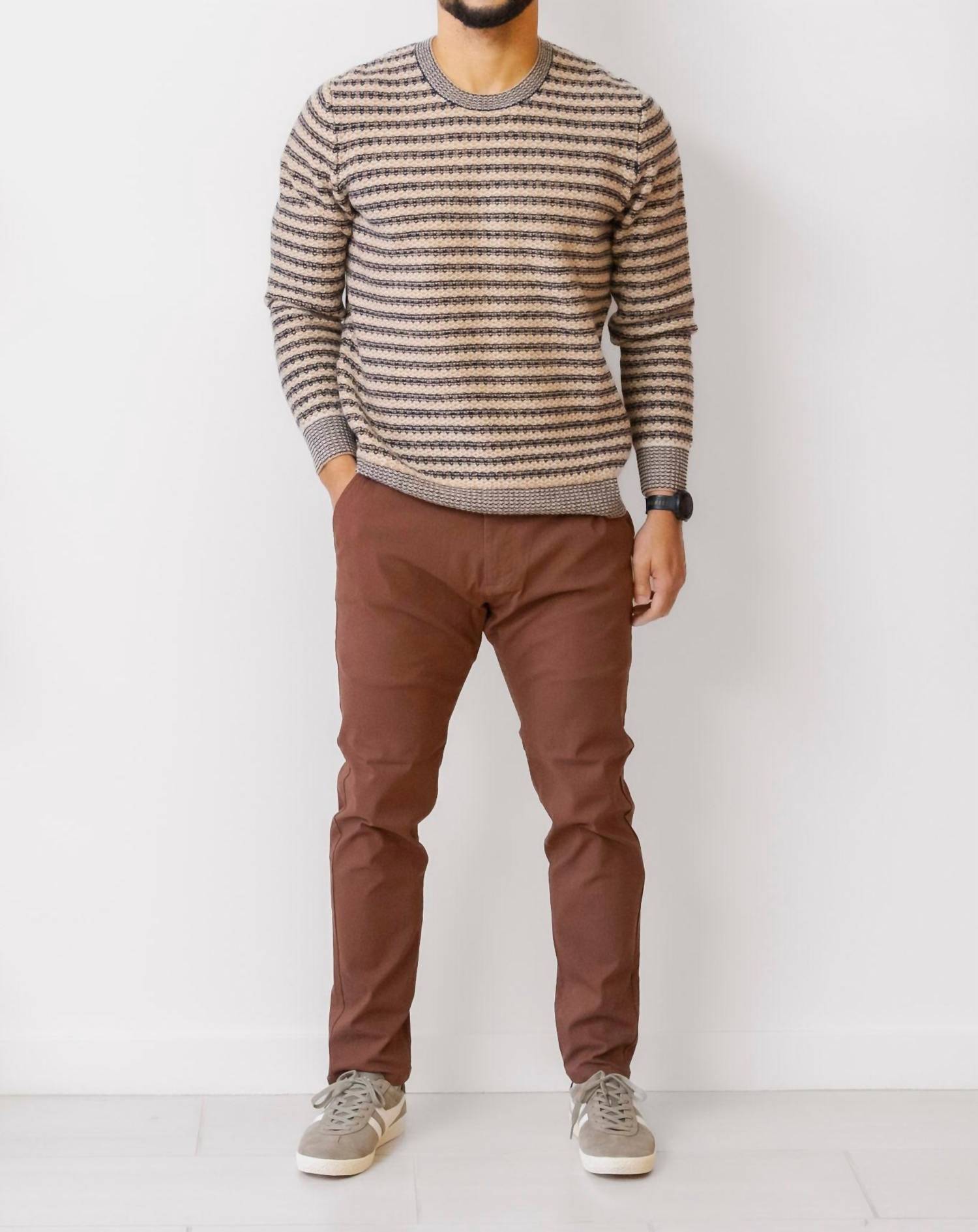 Featuring long sleeves and crafted from a luxurious blend of 85% Wool and 15% Camel, this knit fabrication showcases multi-color contrast ribbed trim and honeycomb stitch. The sweater offers a slouchy fit with a measured length of 27.25 inches from size M. Imported and designed with care in mind, it's recommended for dry clean only.