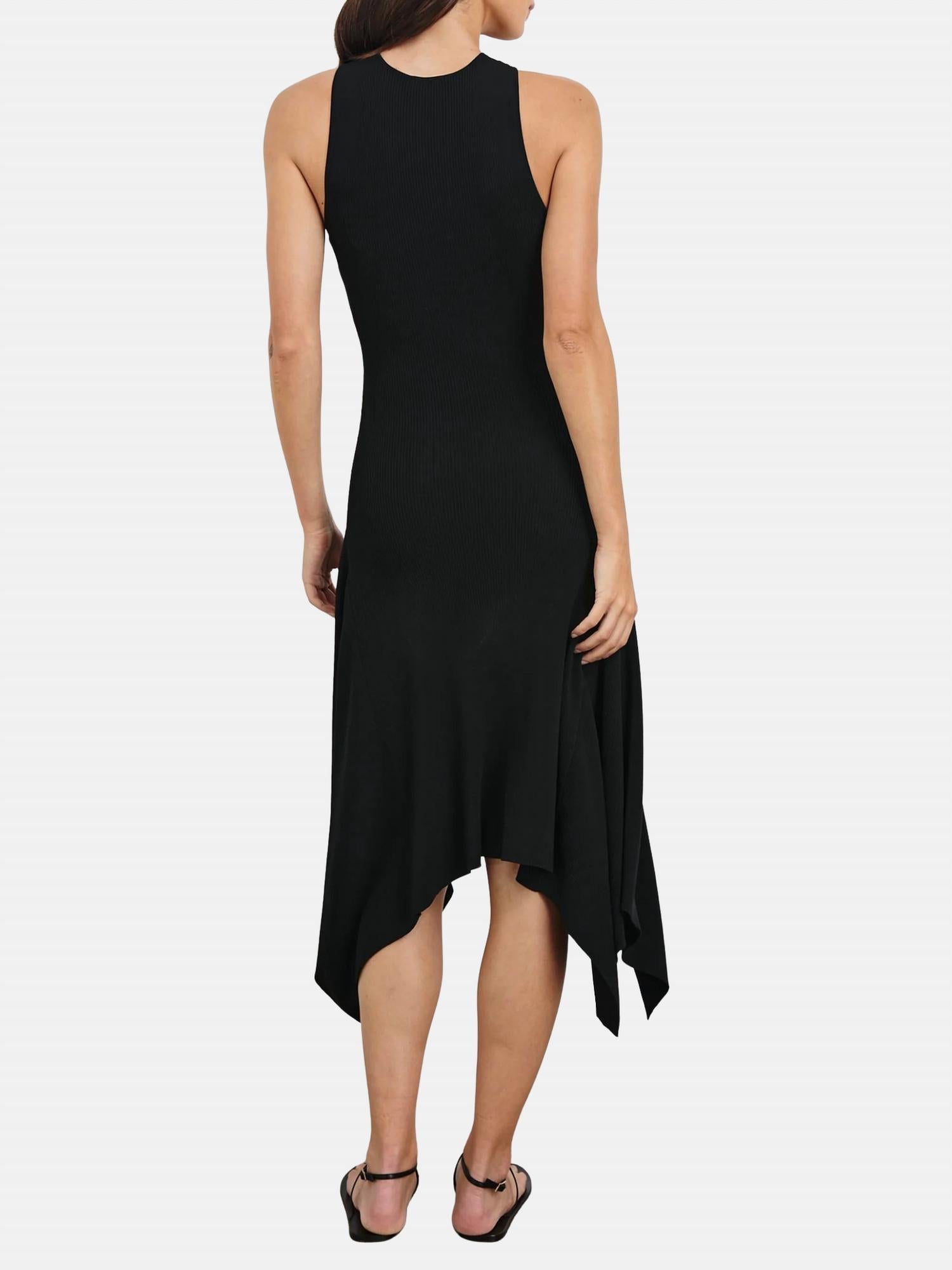 A midi dress so versatile, your options for wearing it are endless. Discover the Rails Constanze Ribbed Knit Midi Dress, a sophisticated piece in timeless black designed for seamless elegance. This dress features spaghetti straps and a flattering crossover halter neckline adorned with gold seashell hardware, perfect for adding a touch of coastal charm. With a length of 39 ¾” from shoulder, the handkerchief hem enhances movement, while the pull-on closure ensures a comfortable fit. Composition: 80% Viscose, 20% Nylon. Care: Hand wash cold, hang or lay flat to dry, cool iron if needed, do not bleach or tumble dry. Imported.
