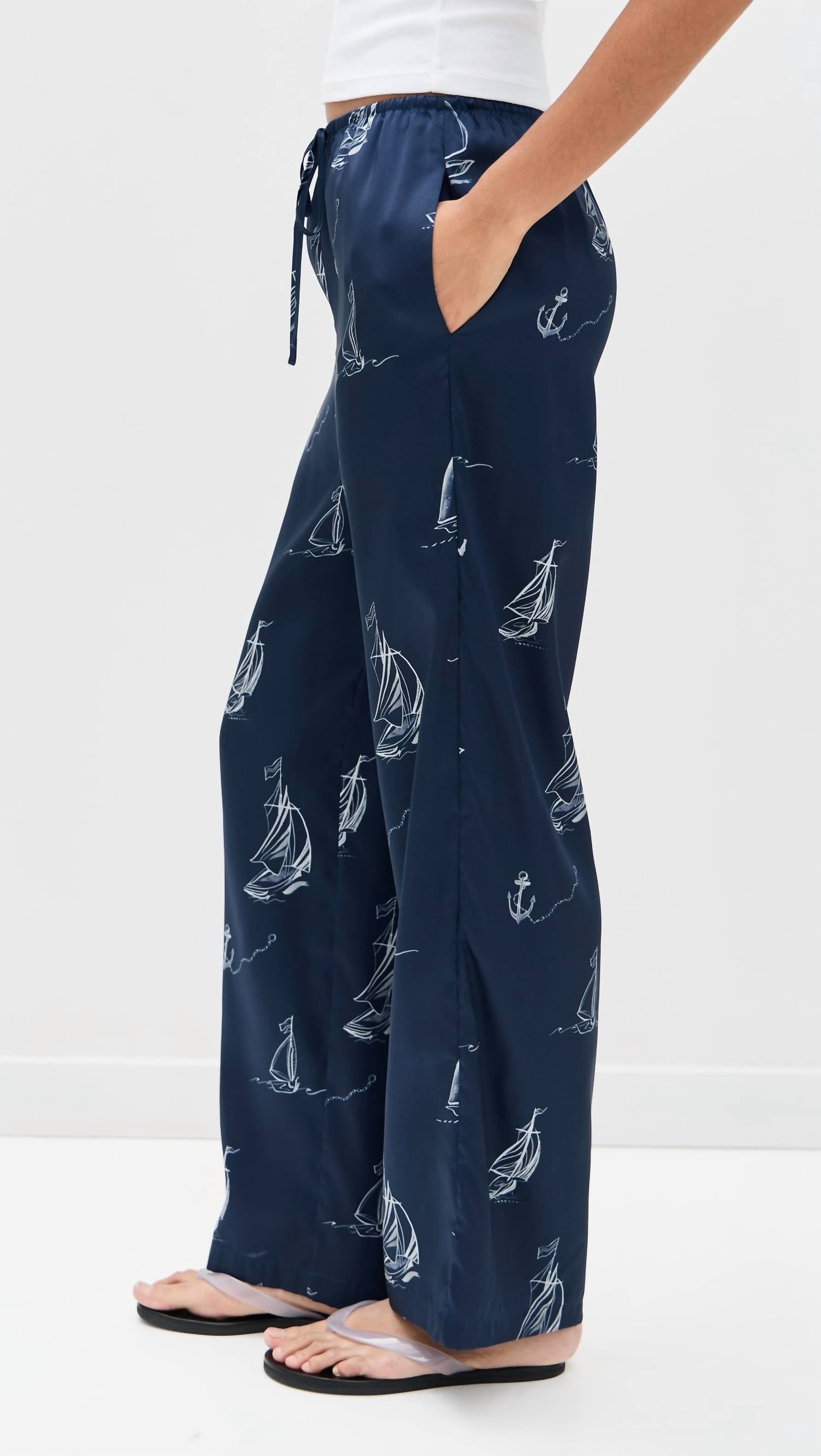 A straightleg pant that workes season after season. Dress these up with your favorite blouse or keep it casual with your go-to tee. Discover the Damani Pant by Rails, a chic piece in a unique sailboat print, exuding quiet luxury. These exquisite high-rise pants feature a 29.5" inseam straight leg, with a covered elastic waistband and tie closure for a personalized fit. Crafted from lightweight, non-stretch silky twill, the shell composition is 100% polyester, ensuring both comfort and style. Made in China with meticulous attention to detail, they are best cared for via dry clean.