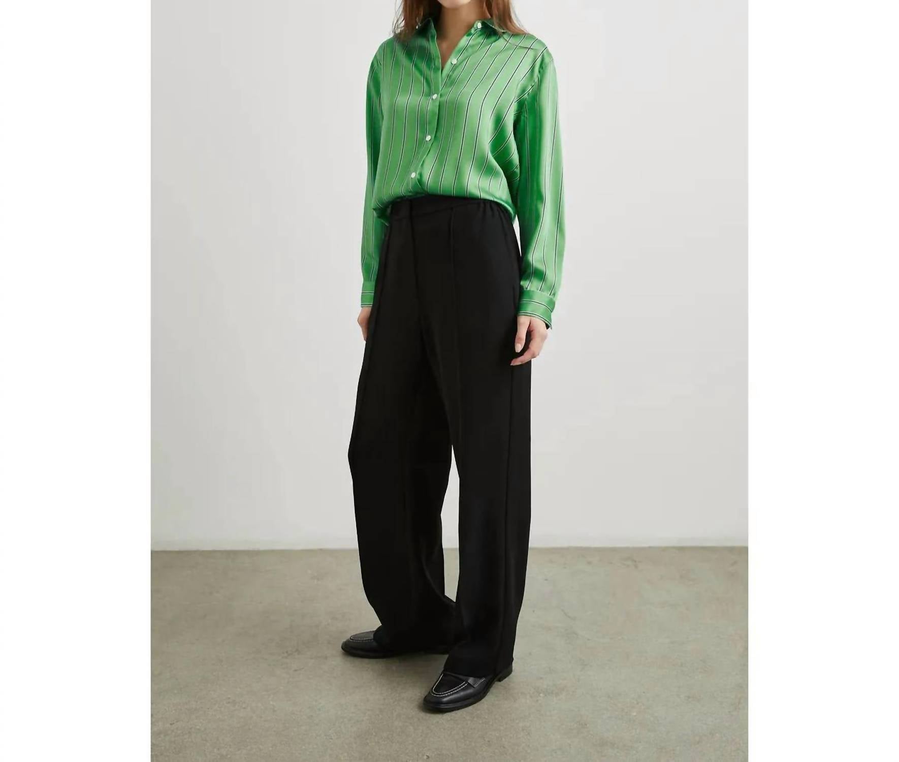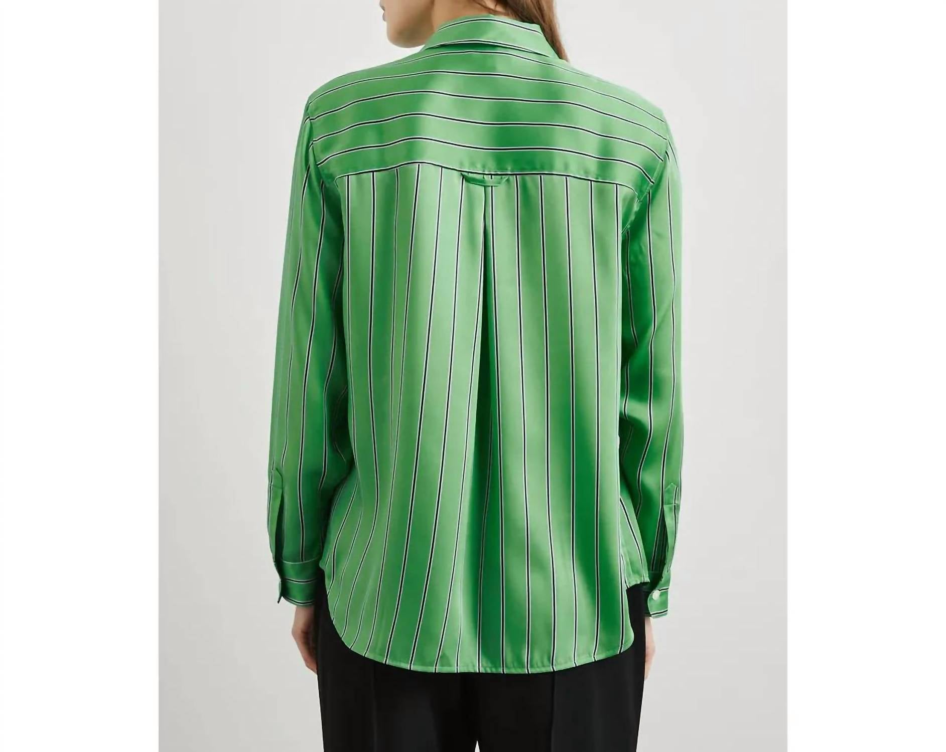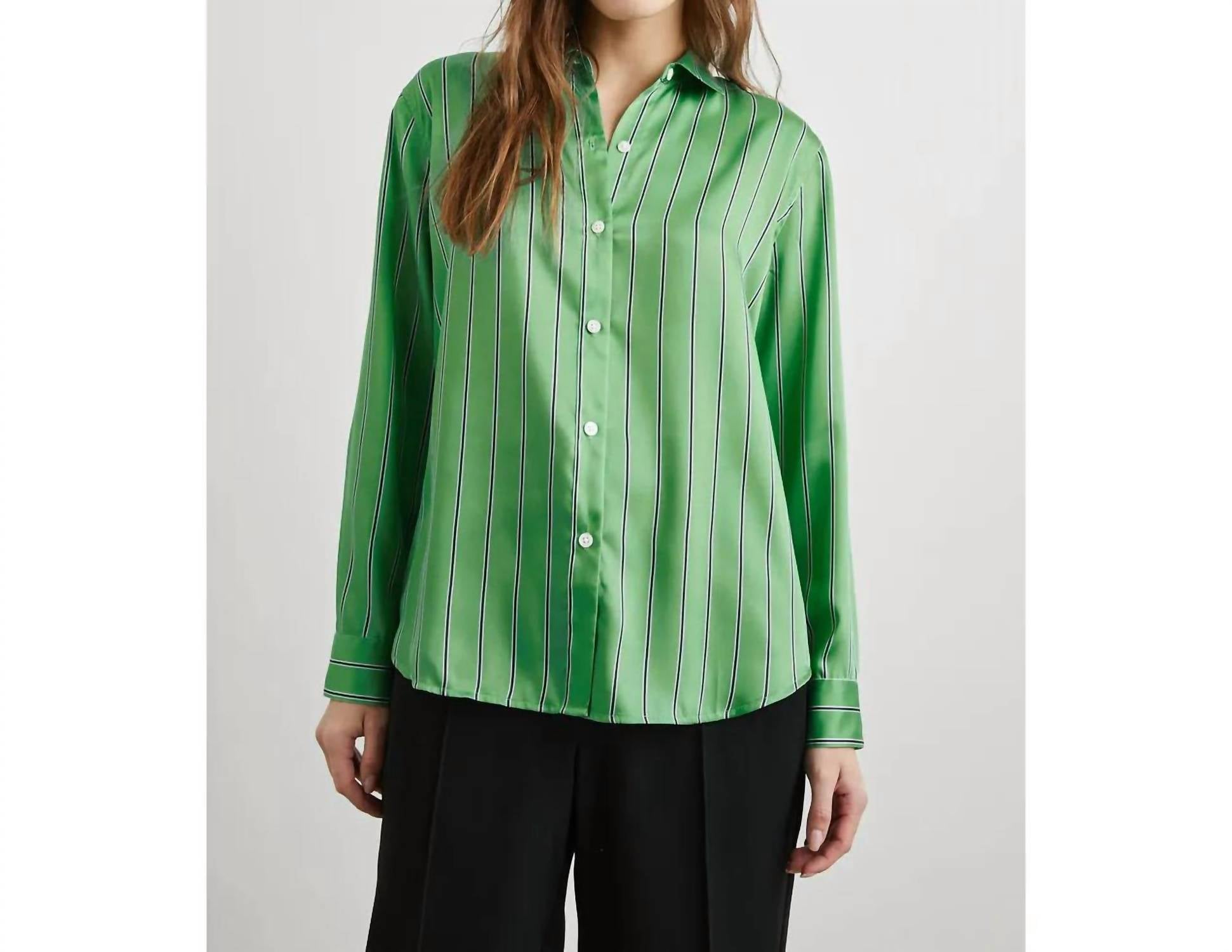 The Elias Shirt by Rails redefines classic menswear-inspired style with its clean, versatile basil stripe design. This long sleeve button-down is crafted from 100% polyester, offering a supple, shiny twill that drapes elegantly without a chest pocket. Measuring 27.25" in front body length, it provides a true-to-size fit, ideal for effortless transitions from day to night. Originating from imported materials, this shirt features a traditional collared neckline and requires dry cleaning for optimal care.