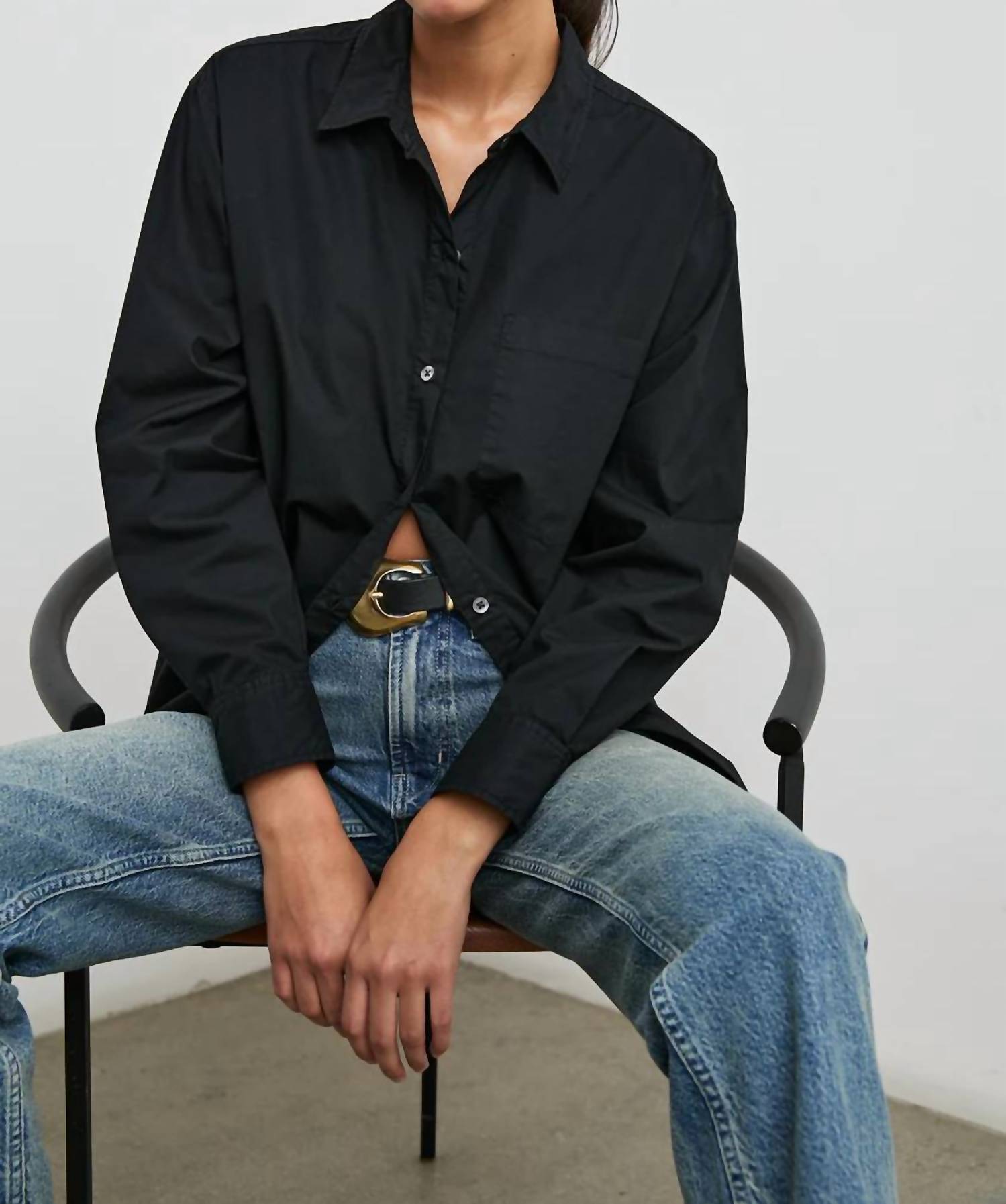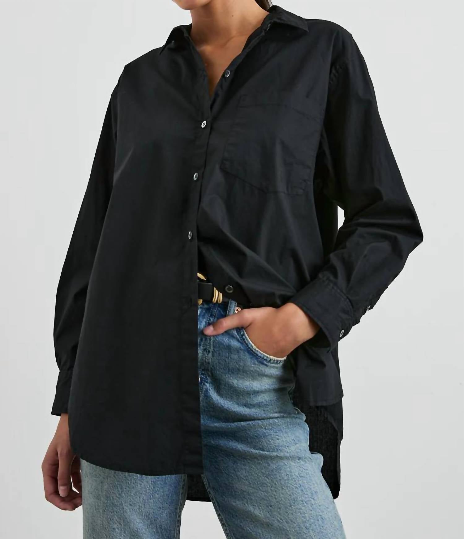 Perfectly tailored and soft to the touch. Crafted for ultimate relaxation in a lightweight and breathable style. Long sleeve button-down shirt. Made from 100% cotton. Features a boyfriend fit with relaxed silhouette. Button closure. Hand wash cold or dry clean. Measures a front body length of 30 inches from a size small.