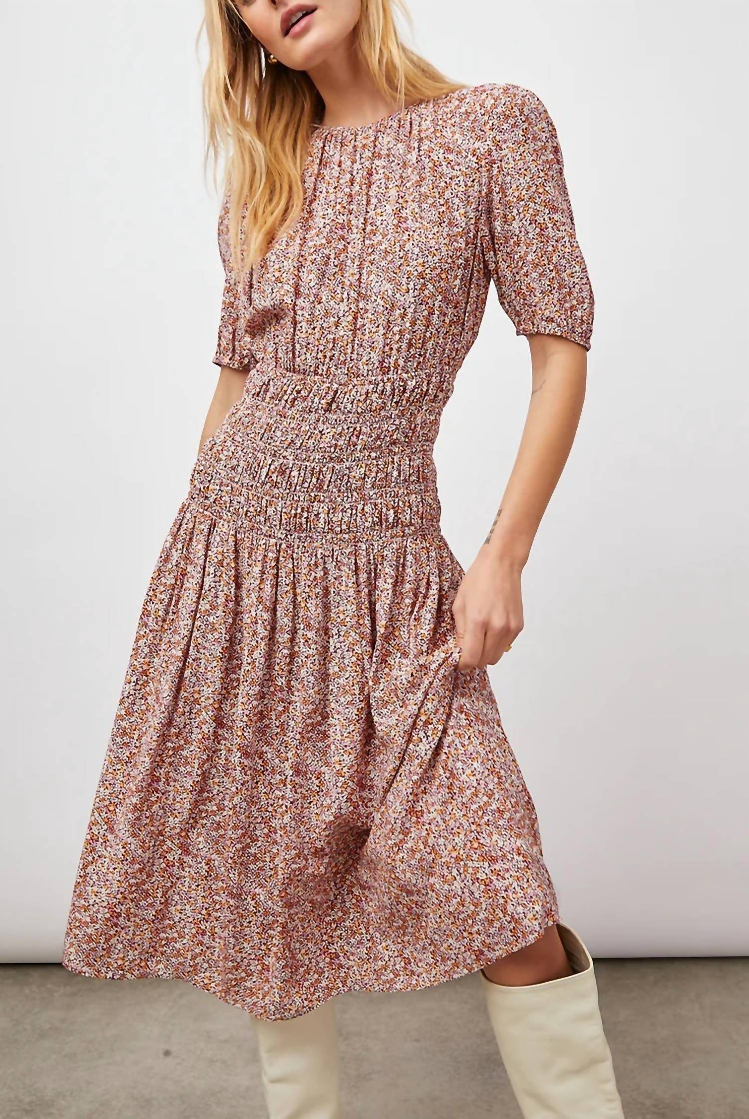 Comfortable and cute, this casual day dress has it all.Made from lightweight rayon crepe, this short sleeve midi dress features a smocked waist for a swingy fit.