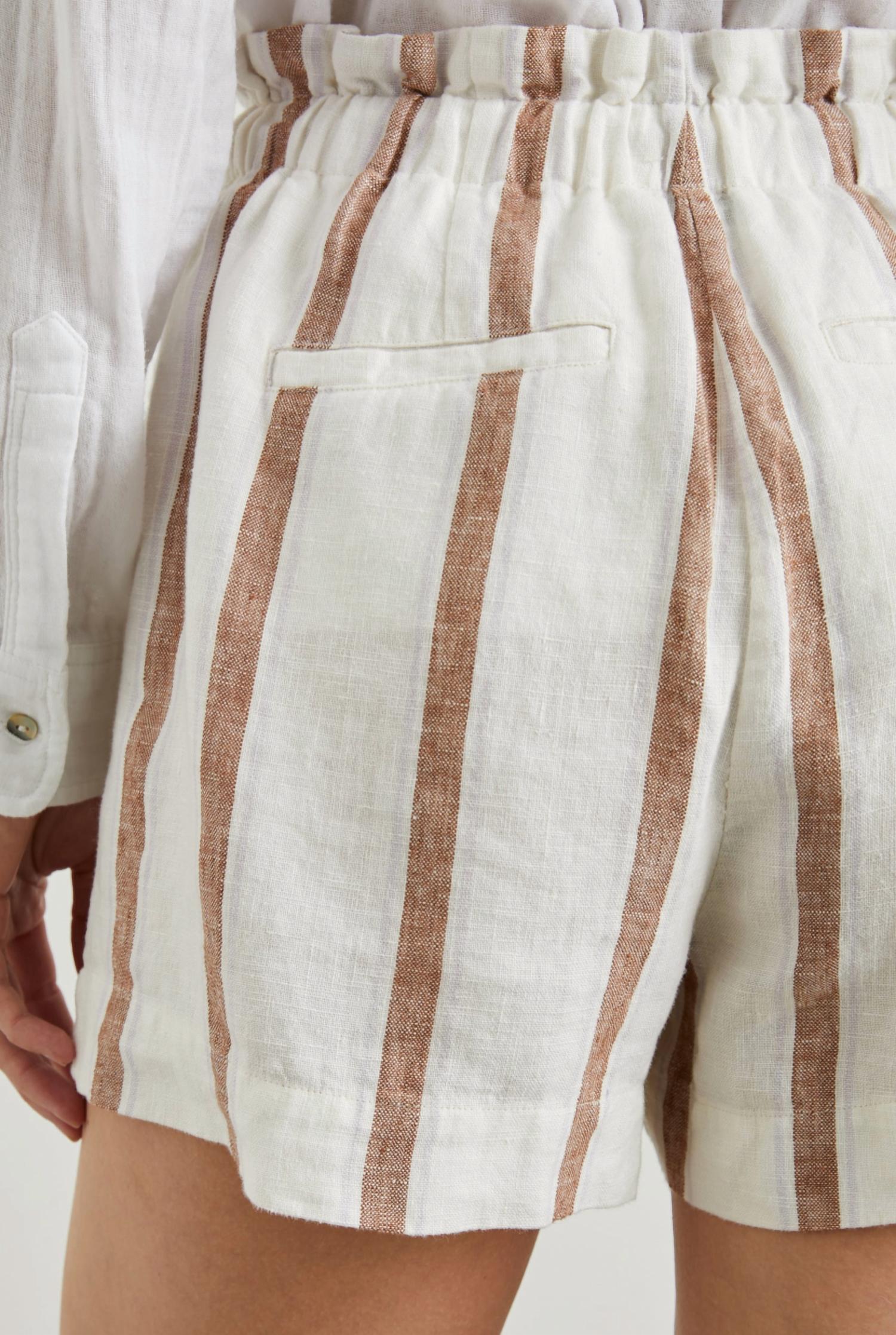 Coastal-inspired shorts. Pleated waistband with a rope drawstring. Two spacious front pockets. 100% Linen. Imported. Recommend ordering true to size. Inseam Length: 3". Front Rise Length: 13 3/4" (Measured from Small). Dry clean only.