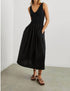 The Franca Dress emphasizes effortless elegance, combining an ultra-soft jersey cotton bodice with a lightweight poplin skirt for all-day comfort. Featuring twisted jersey straps, a flattering dropped waist and on-seam pockets for convenience, this midi, bodycon dress is a must for the modern woman on the go.