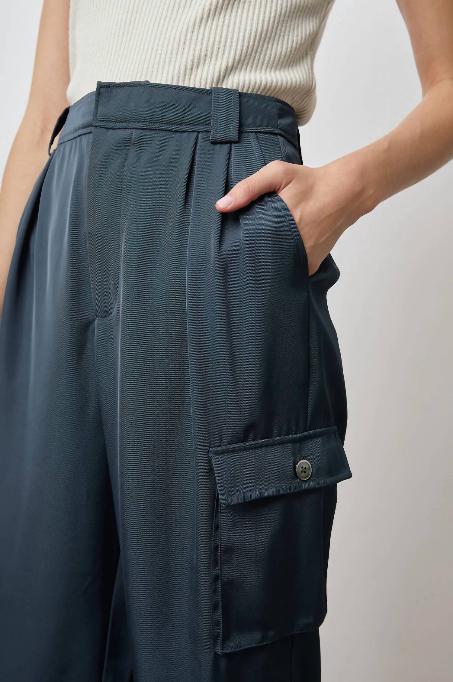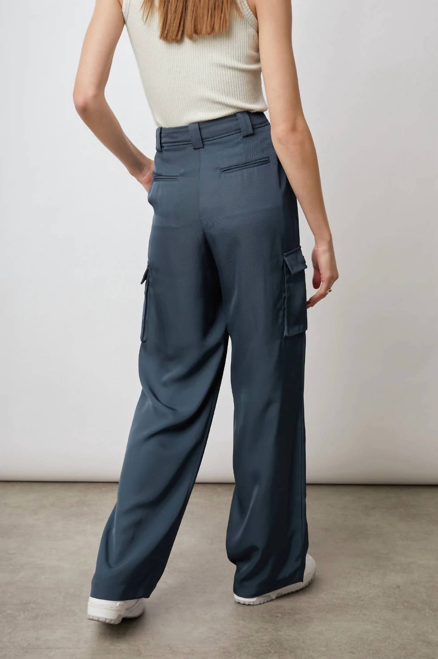 This pant features a hook and eye closure at waist with a wide leg and large patch pockets. 100% Polyester. Imported.