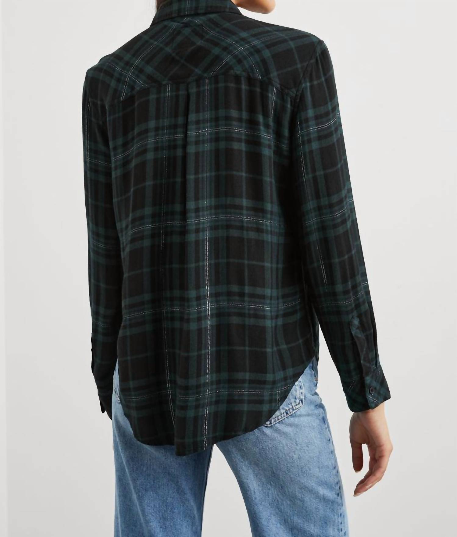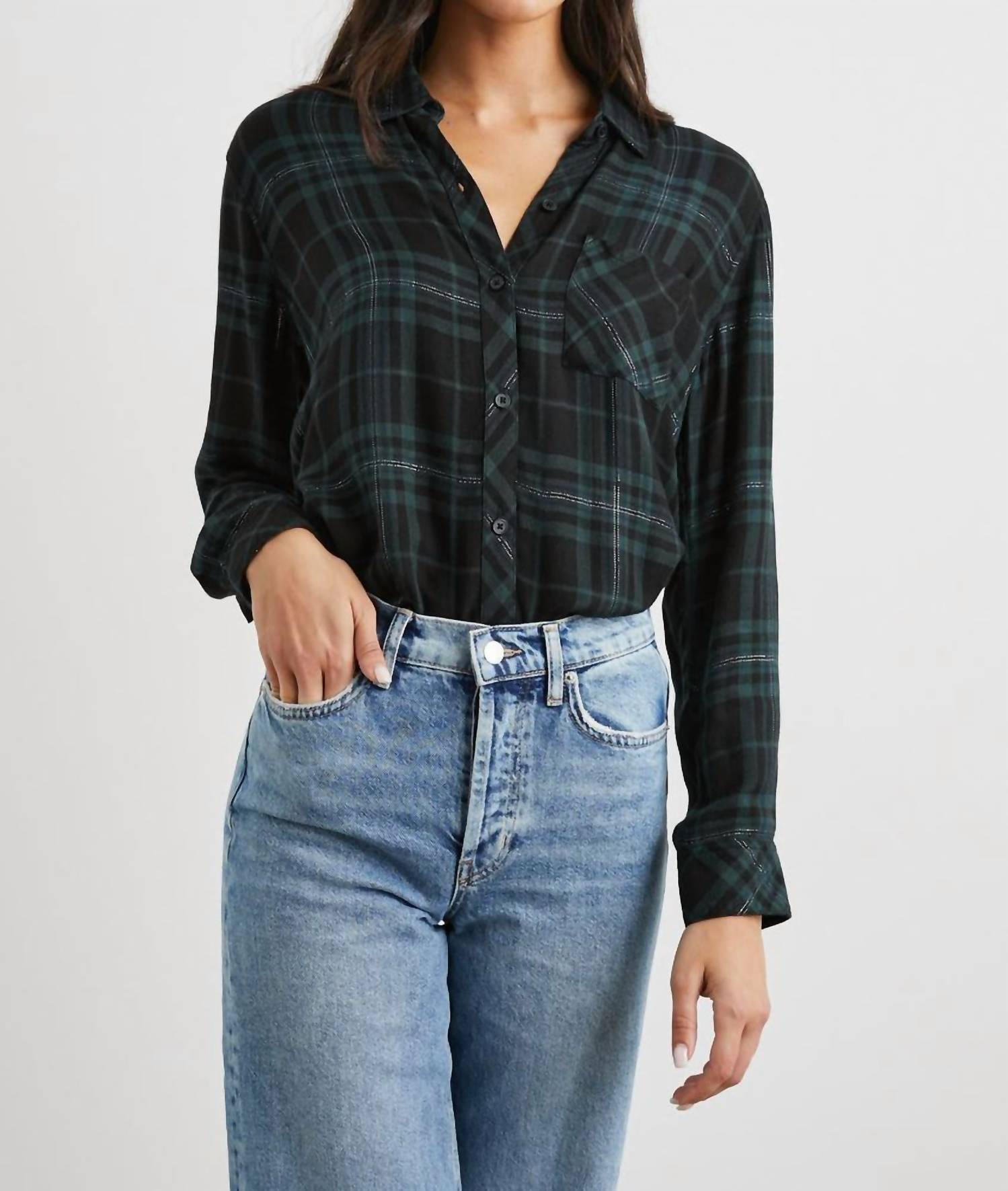 Perfectly tailored and soft to the touch. Discover the Hunter Top by Rails, an embodiment of timeless style with a modern twist. This long sleeve, plaid & check button-down shirt in Forest is crafted from 100% Rayon, featuring a chic collar neckline and functional pockets. Designed for effortless pairing, its button closure and easygoing fit make it a versatile addition to any wardrobe. Care for it with a hand wash, and wear it casually with denim and sneakers for a relaxed yet polished look. Alyssa, standing 5'10", wears a size medium.