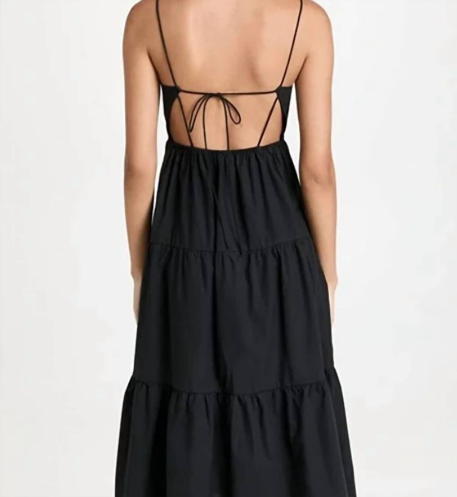 A midi dress so versatile, your options for wearing it are endless. This is a must have staple for your closet!! A tiered midi dress, with a square neckline, elastisized waist, and cut out strappy back.