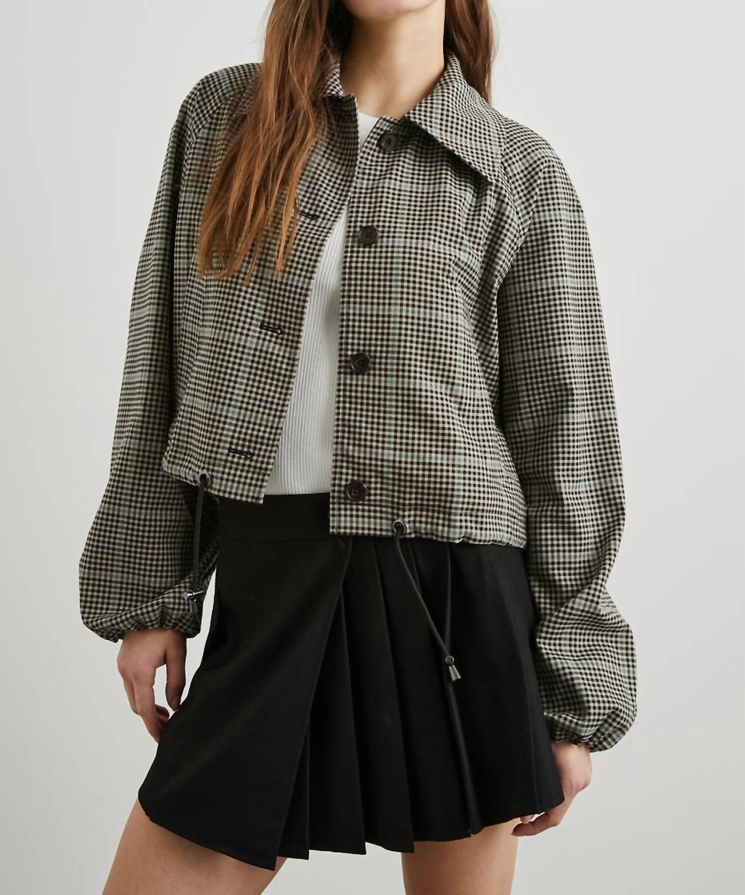 Cute, casual, and comfortable. This jacket is a must have. Meet the North Jacket by Rails, a standout piece for your spring wardrobe in a chic teal multi-check gingham. This women's casual jacket is crafted from polyester and features long sleeves for a touch of classic style. It comes complete with functional pockets and a button closure, adding practicality to its retro 90s fashion appeal. Care is simple with dry cleaning recommended to keep it looking fresh for those beach days or Thanksgiving gatherings.