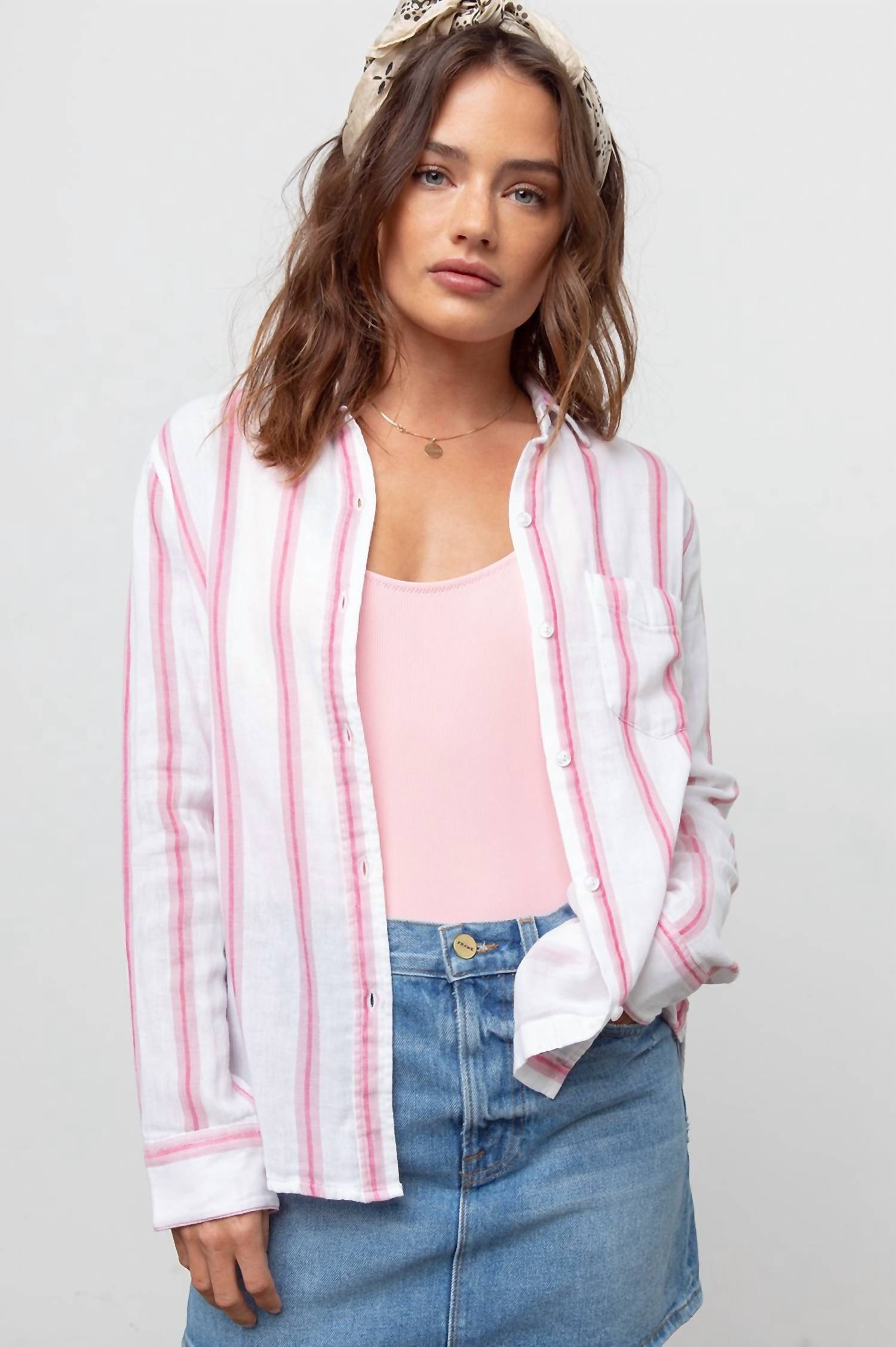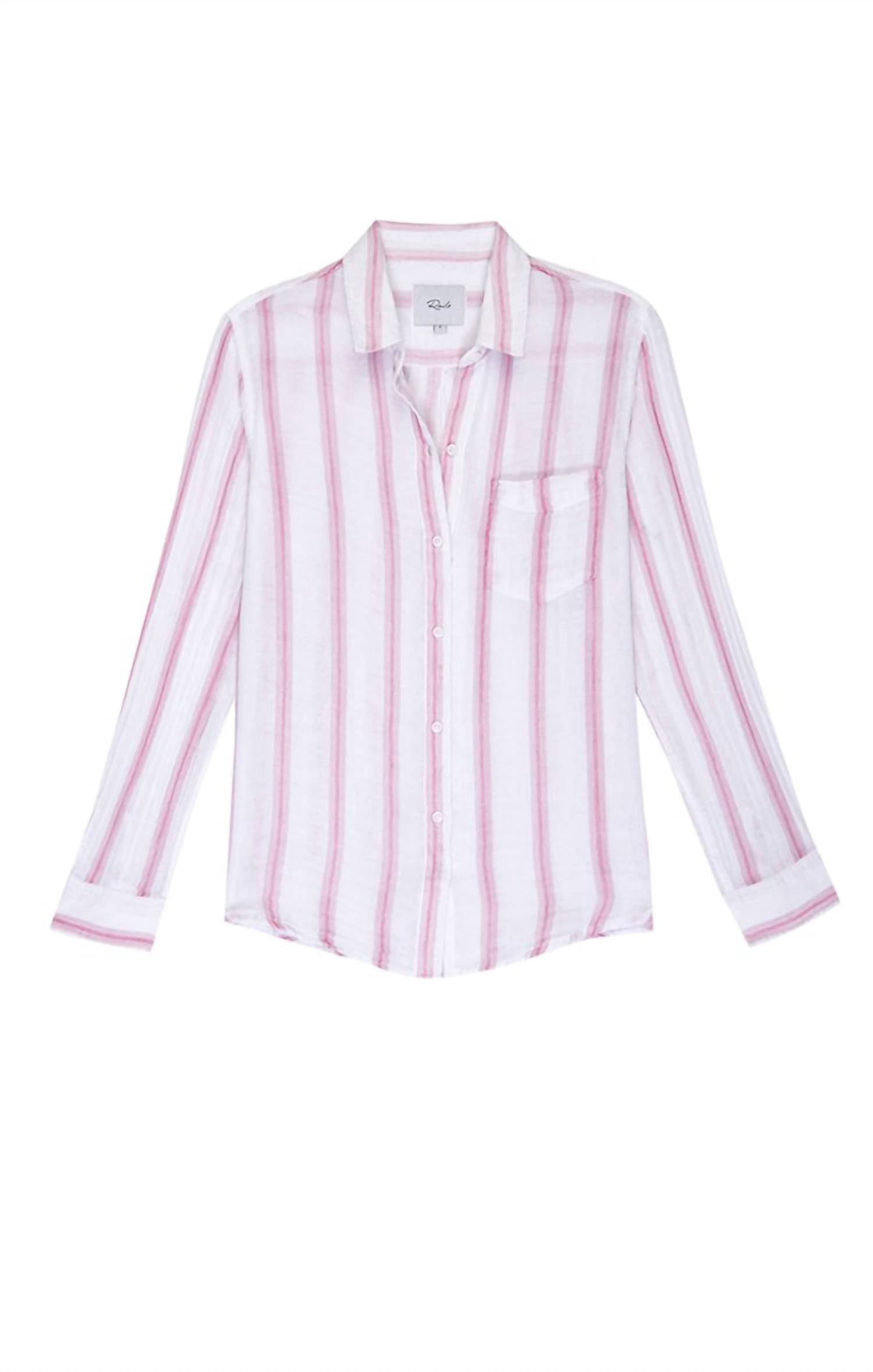 Long sleeve. Double gauze button-down. Muted rainbow stripe pattern. Lightweight. Breezy and breathable. 100% Cotton. Hand Wash Cold. Hang Dry. No Bleach.Imported.