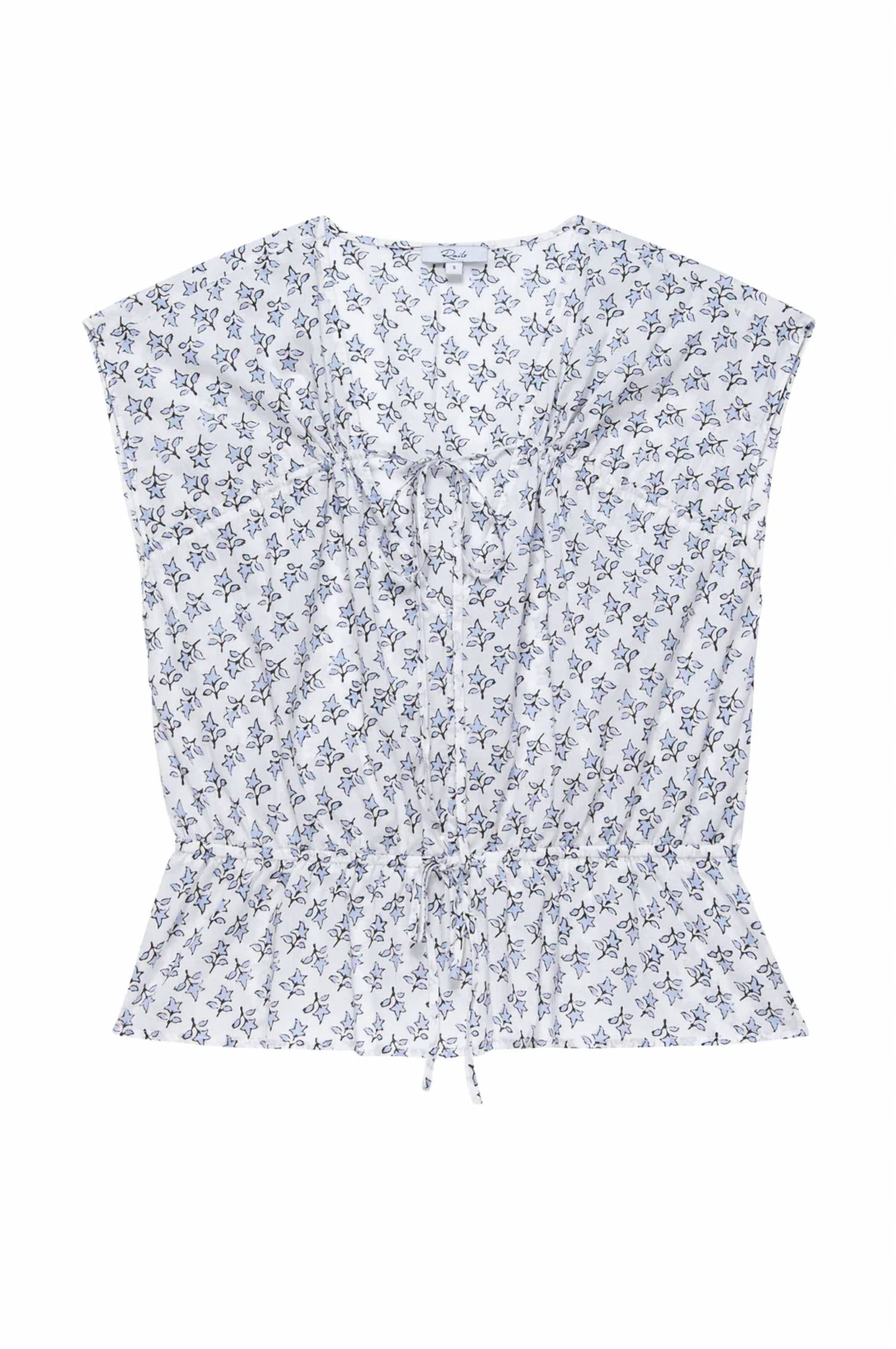 Pair this with your favorite jeans and slides for your next girls night out.The top drawstring allows you to customize the neckline, while a second drawstring cinches the waist to create a peplum-style flair. This patterned, cap-sleeve shirt is made of light weight beach cotton. Fabric: 100% Cotton. Hand wash cold. True to size. Model is wearing size S. Front Body Length: 22″ (Measured from Small).