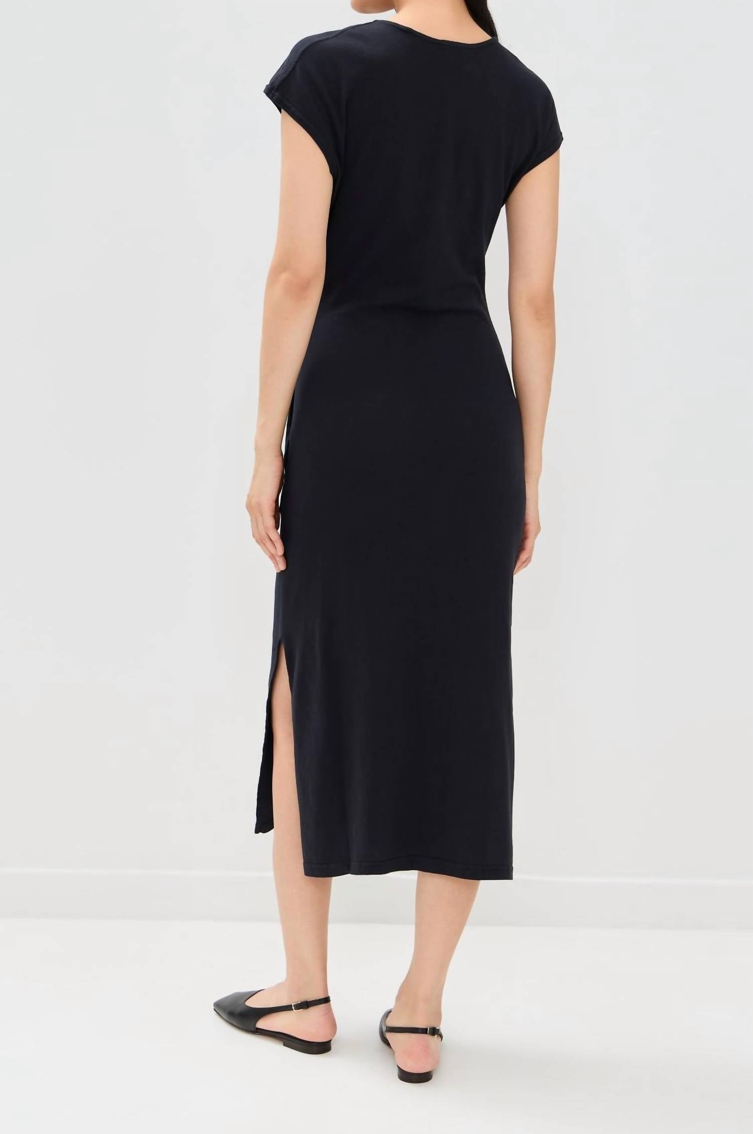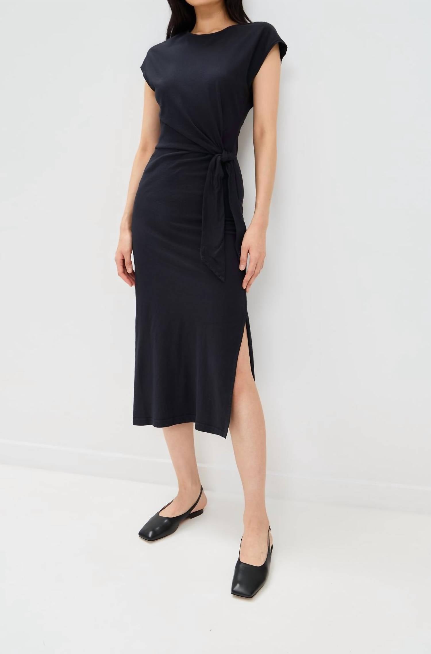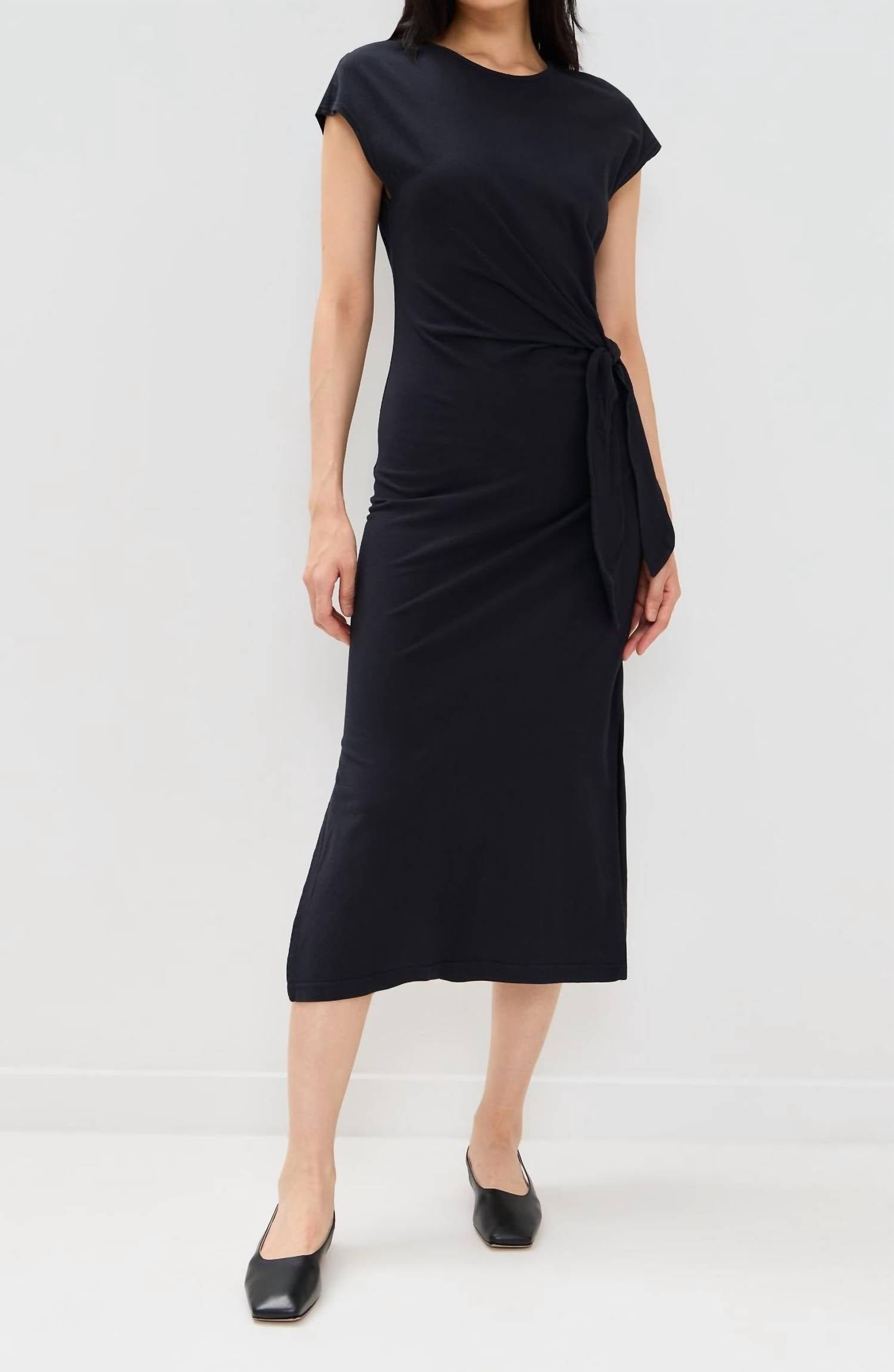 Just add slides or mules and you are good to go. Fabric: Lightweight, super-stretch soft jersey Ruched waist with tie at side Crew neck Pullover design, no closure Shell: 100% cotton Unlined Wash cold Imported, China Short sleeves
