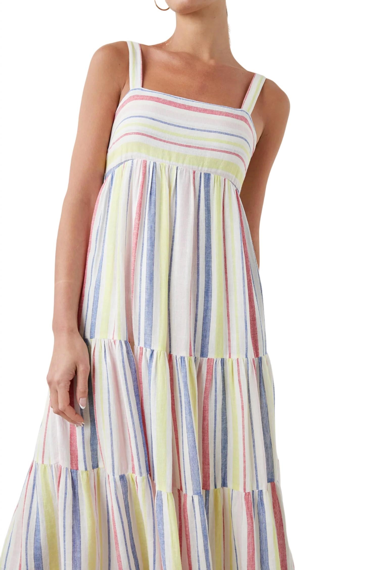 The perfect length dress does exist. Pull-on styling. Smocked back panel. Made from luxe linen and complete with a tiered, flowy skirt. Fabric: 55% Linen 45% Rayon. Hand wash cold. True to size. Model is wearing size S. Front Body Length - 40" (Measured from Small).