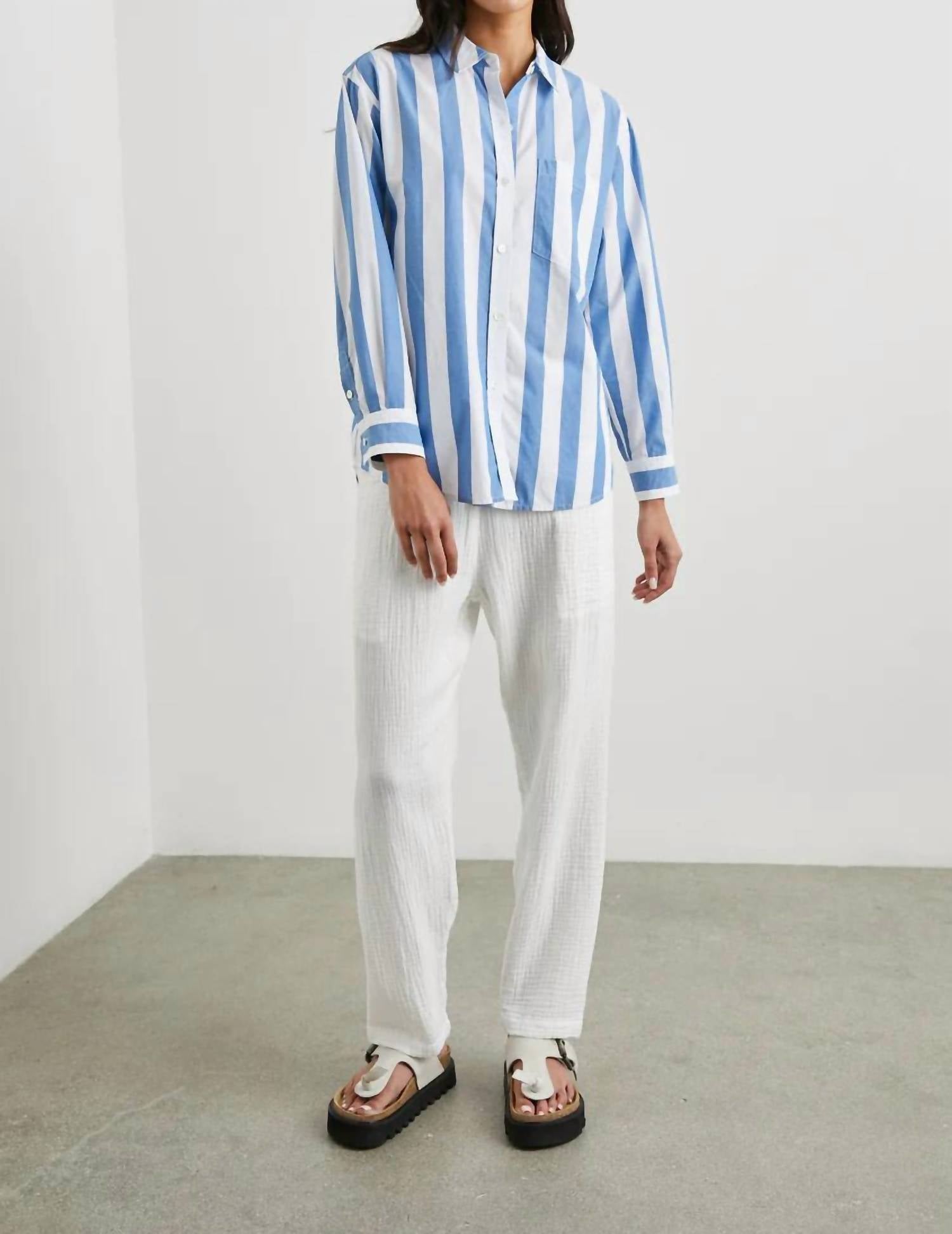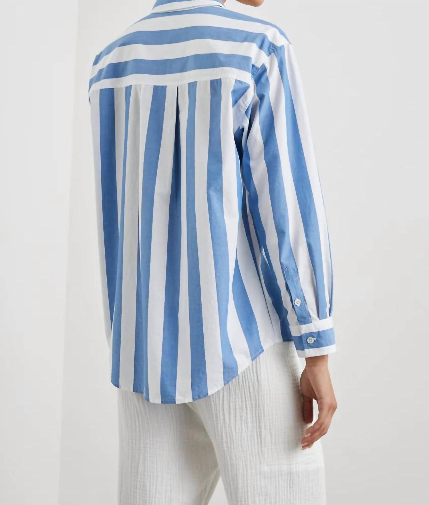 A classic button down shirt that will never go out of style. Discover the Stripe Arlo Shirt by Rails, perfect for transitioning from work to weekend with effortless style. This blue and white Rue stripe long-sleeve shirt offers a classic fit and features a collared neckline with a chic patch pocket at the chest. Crafted from a lightweight cotton blend of 55% Cotton and 45% Tencel, it boasts a crisp appearance and is imported for quality assurance. Its button closure enhances its polished look, and for best results, hand wash this garment.