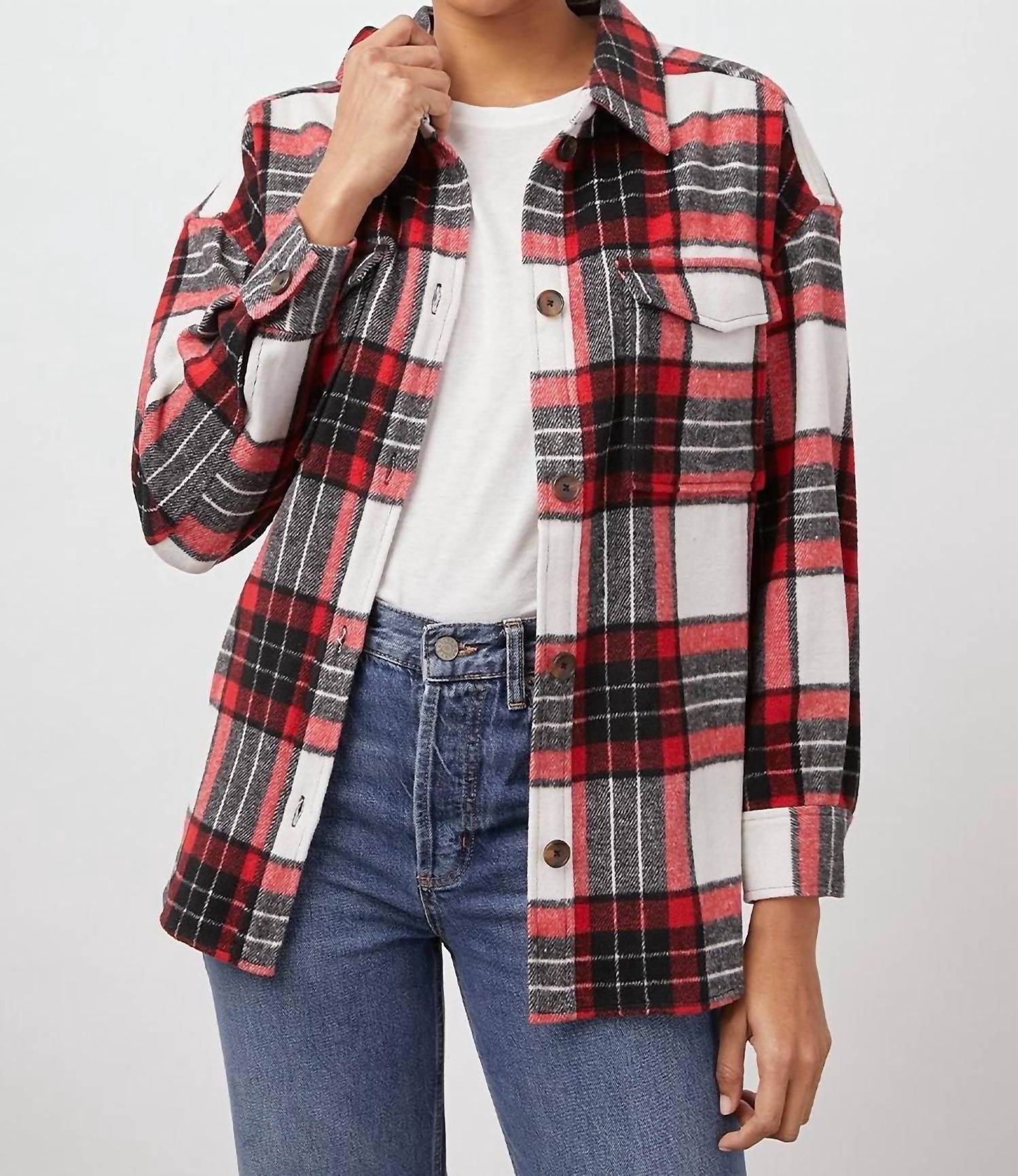 A casual yet cool jacket that every closset needs. Introducing the Turner Jacket by Rails, a casual yet sophisticated piece in an ivory crimson plaid & check design. Crafted with a blend of 80% Polyester, 10% Wool, and 10% Acrylic, this long sleeve jacket is perfect for the fall season. It features a classic collar and button closure, offering both style and comfort. Care: Dry clean only.
