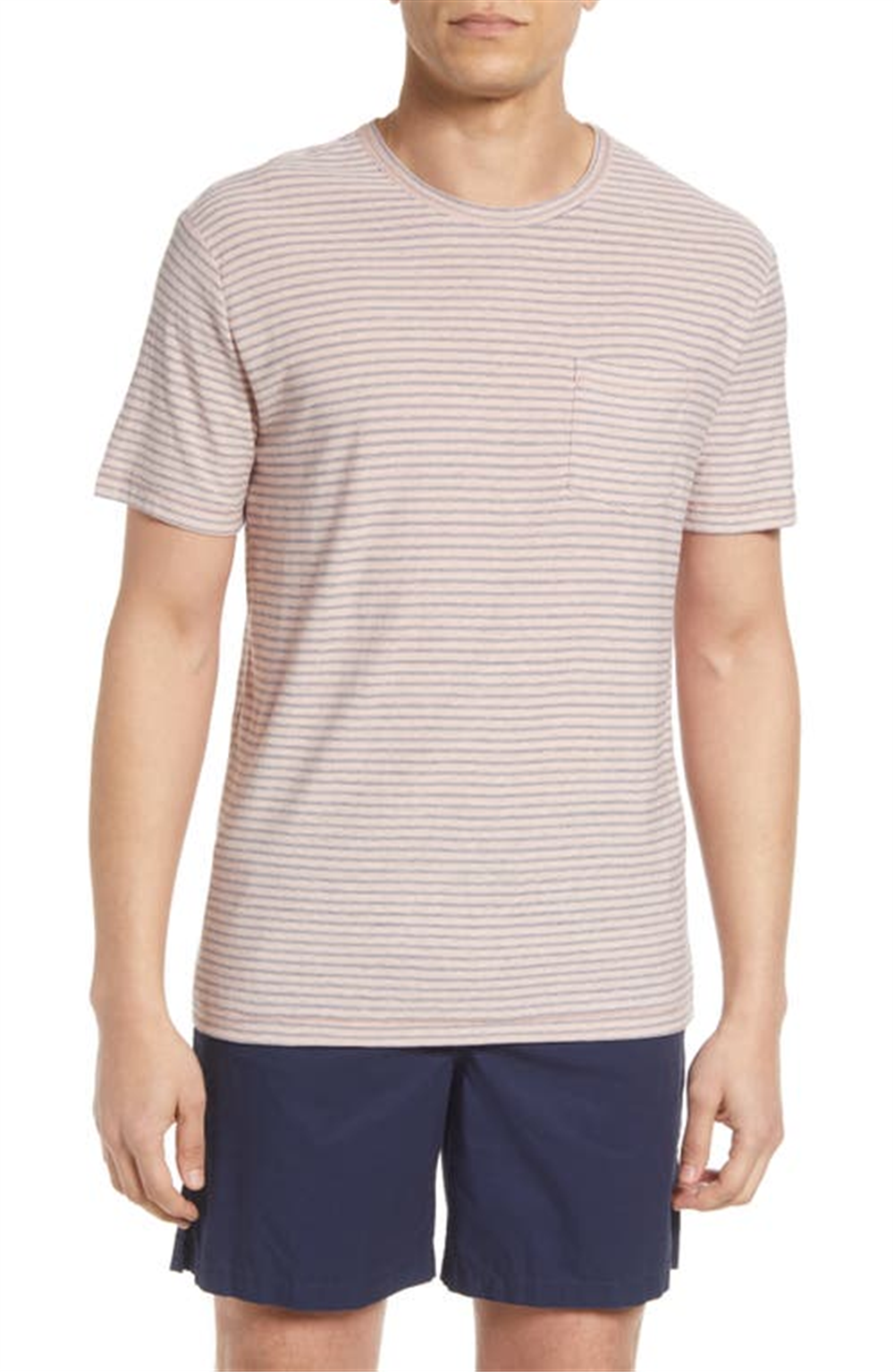 Rails Valencia Stripe Pocket Hemp & Organic Cotton T-Shirt In Rose Indigo Stripe Size X-Large